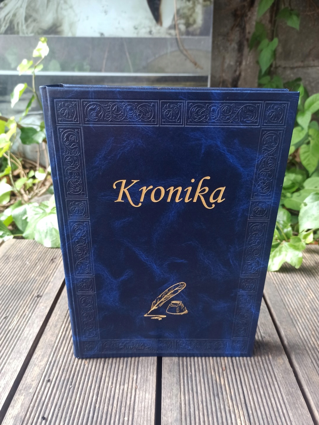 Переплетений у матеріал, що ідеально імітує шкіру, із золотим написом (срібний на замовлення)