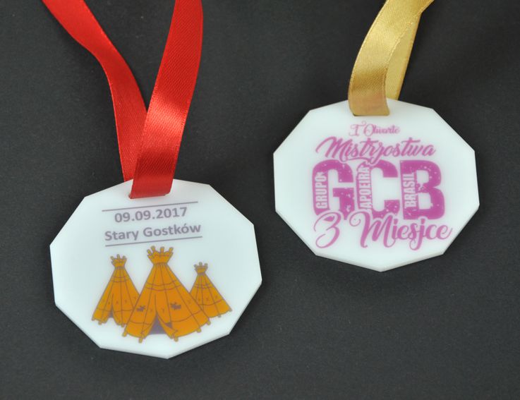 Медалі точно вирізані за допомогою лазерної технології, а графіка на них виконана за інноваційною технологією УФ-друку. Нашу продукцію відрізняє висока якість, естетичність і чудова передача кольору. Крім того, друк міцний і стійкий до будь-яких видів пошкоджень, таких як подряпини, стирання графіки або шкідливий вплив атмосферних факторів (вологість, вода, сонце).