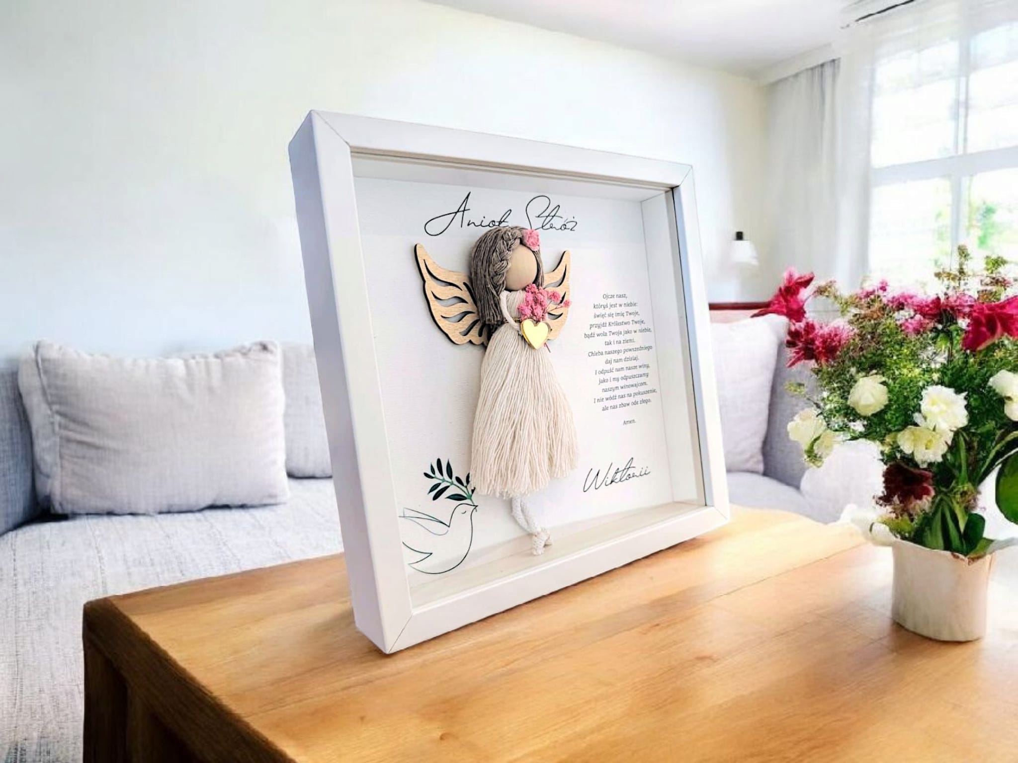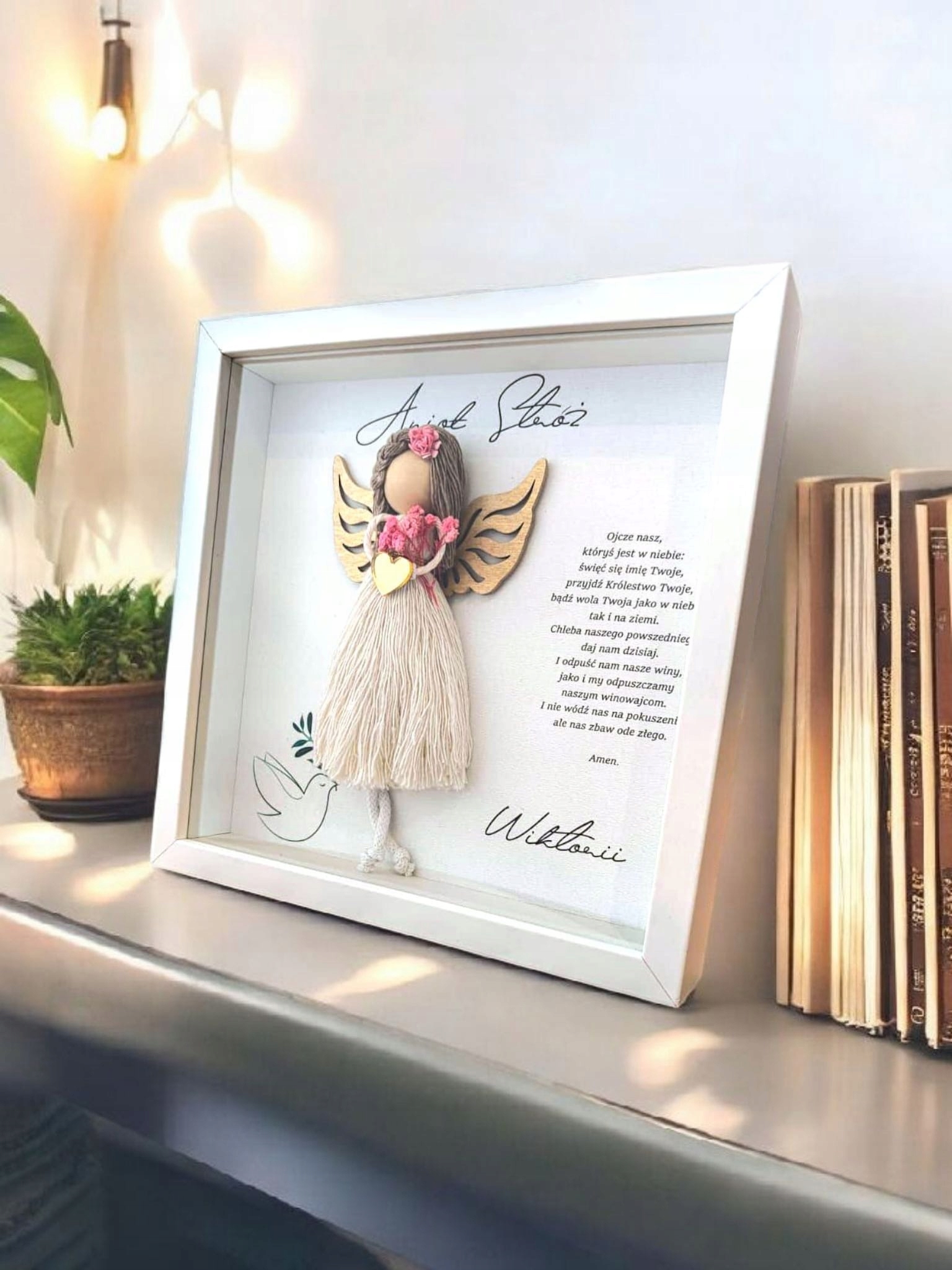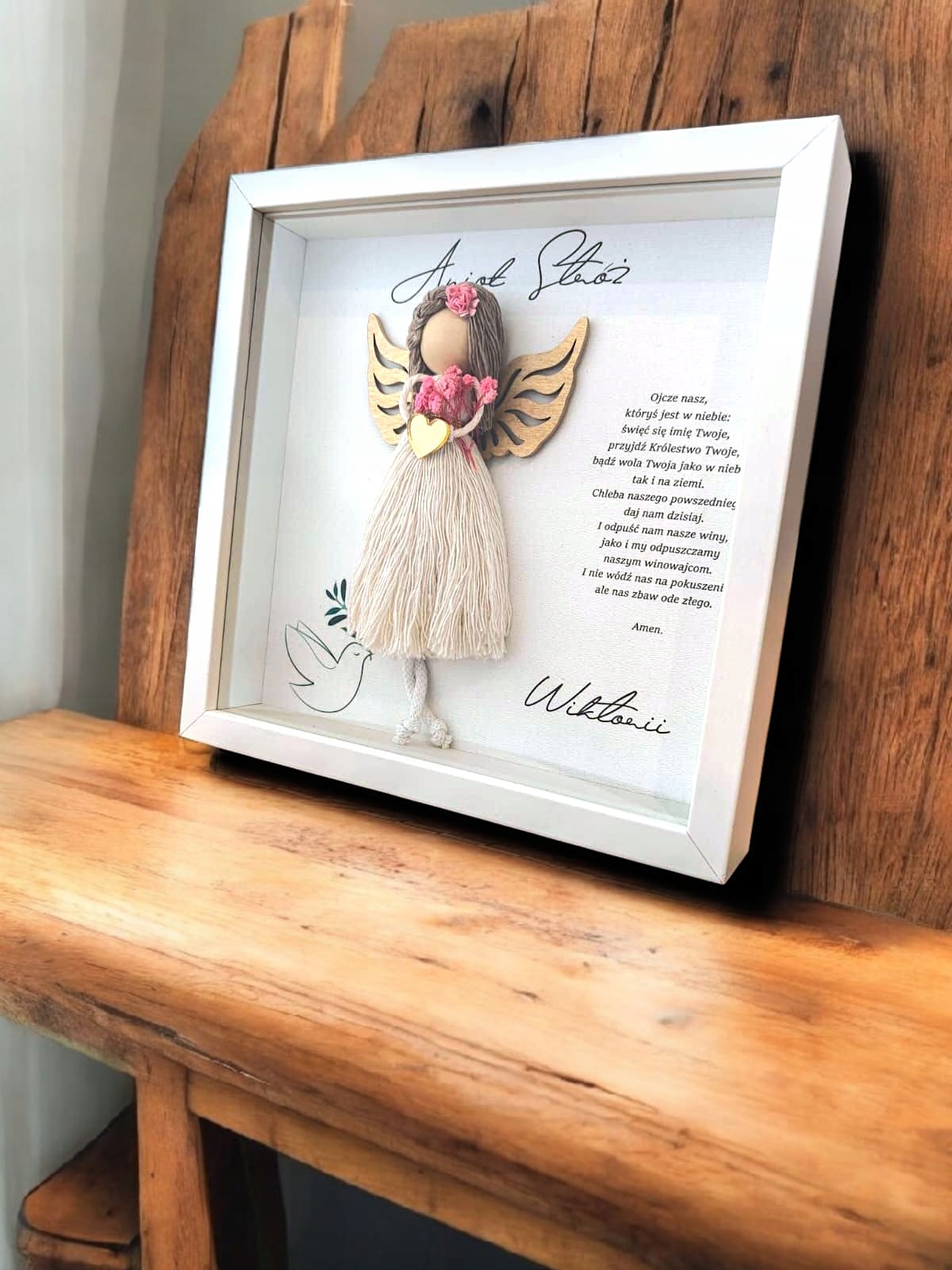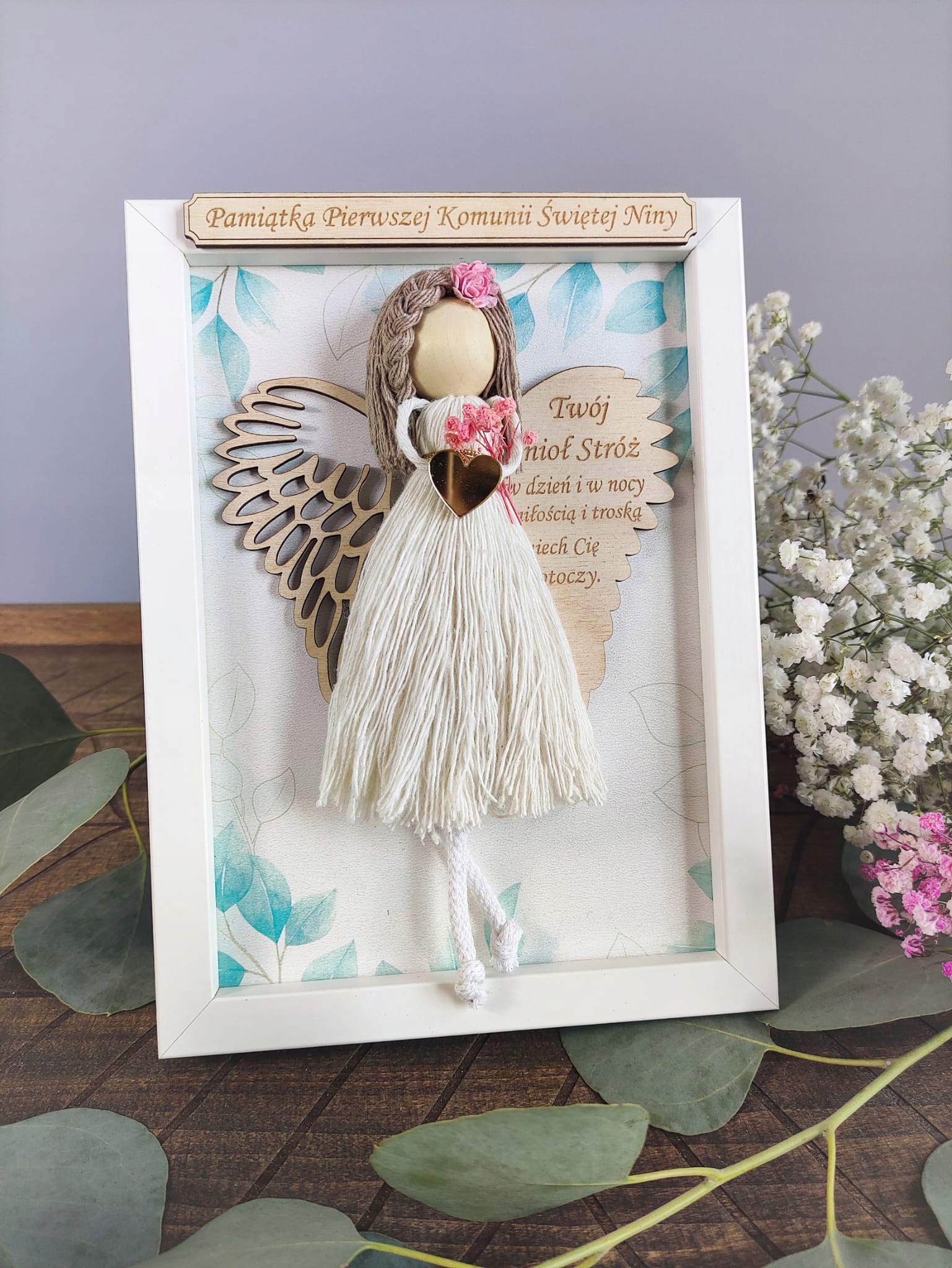 Сувенір Хрещення Рамка першого Причастя Макраму персоналізованого ангела -охоронця