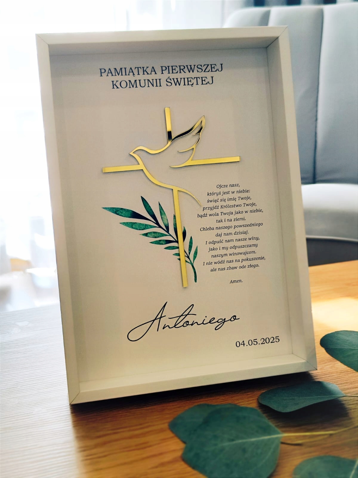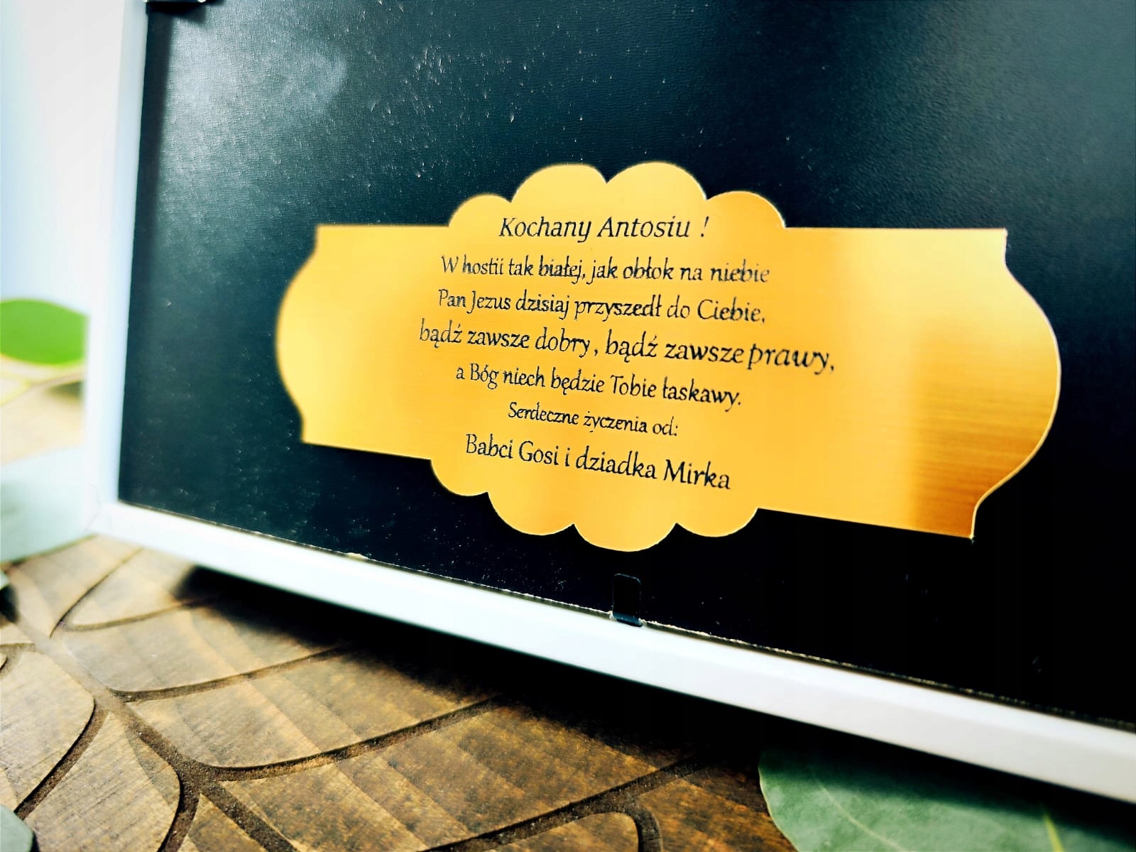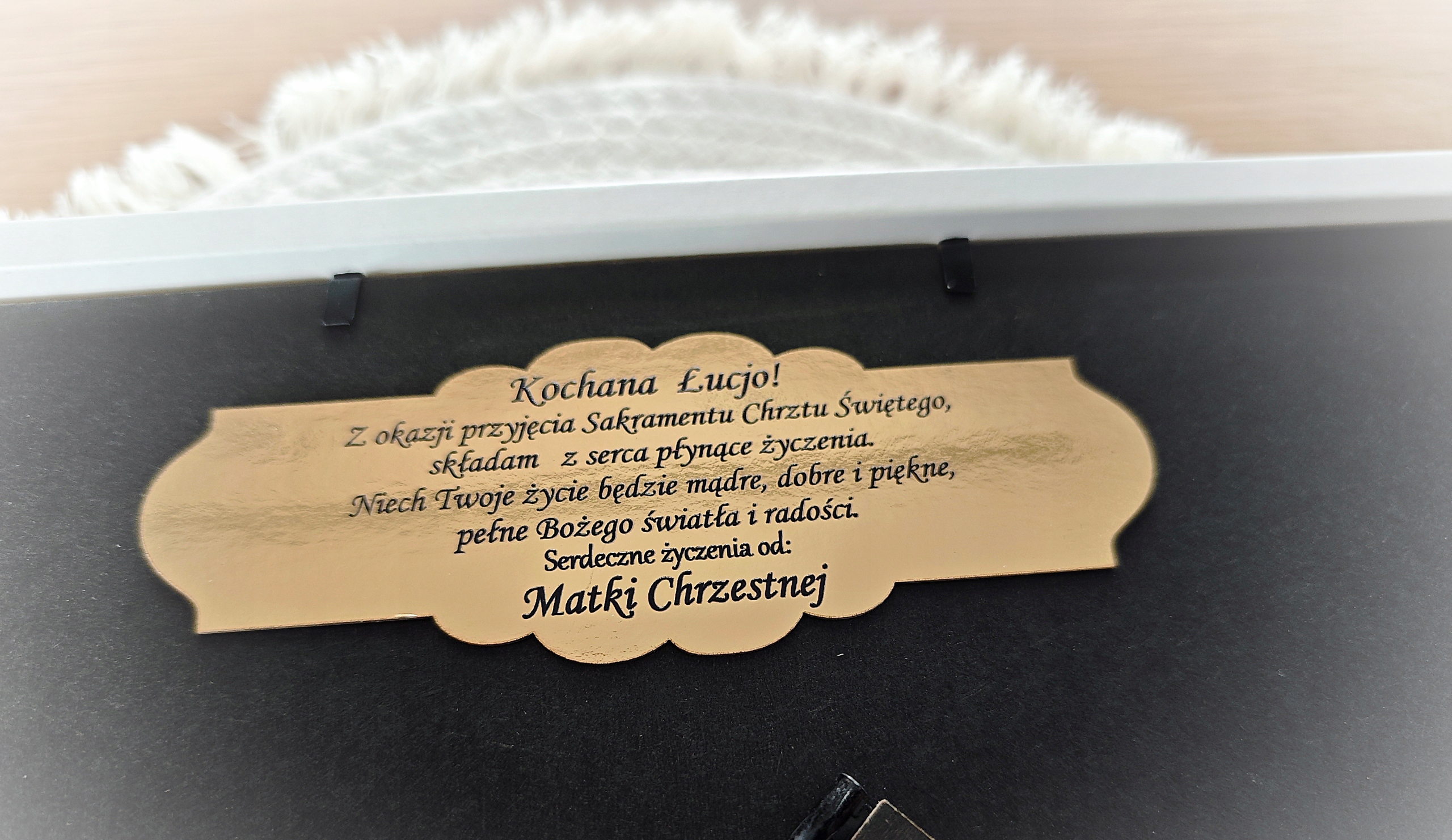 На вашому запиті ми можемо упакувати рамку, щоб вона була готова до передачі, тобто в декоративній коробці з вікном з натуральною начинкою з білою стрічкою з елементом IHS або вартістю серцевої вартості 20 - на останньому кроці, коли купувати можна. "Додаткова послуга"