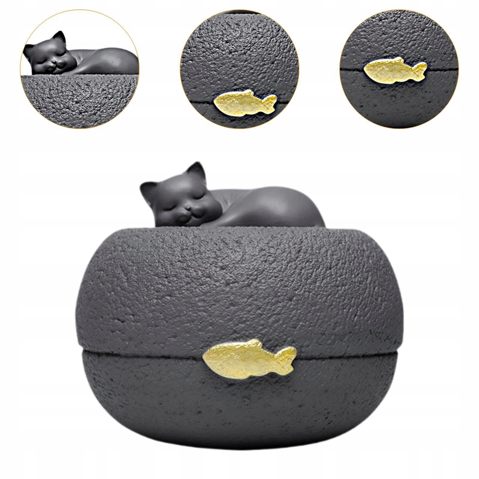 [милий дизайн кота]: Є спляча урна, прикрашена золотом. Загальна форма кругла і чарівна, що викликає думку про власника тварини