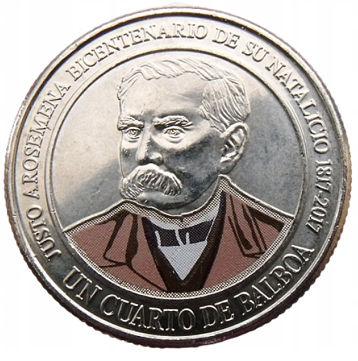 PANAMA 1/4 BALBOA 2017 JUSTO AROSEMENA COLOR UNC
