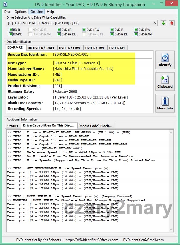 Носії протестовані та перевірені на Plextor PX - B950SA**Plextor PX-LB950SA**LiteOn iHBS 112\212\312\***Pioneer BDR-207DBK-S08XLT-209EBK-S09XLT-S11JX-PR1EPA-***Teac BD-W512GSA\***SONY/Optiarc BD -5300SBWU-500S***Samsung SH-B022ASH-B123LSE-506***LG GGW-H20L\ BH12NS30LG BH16NS40\55*** Asus BW-12B1STAsus BW-16D1HT***