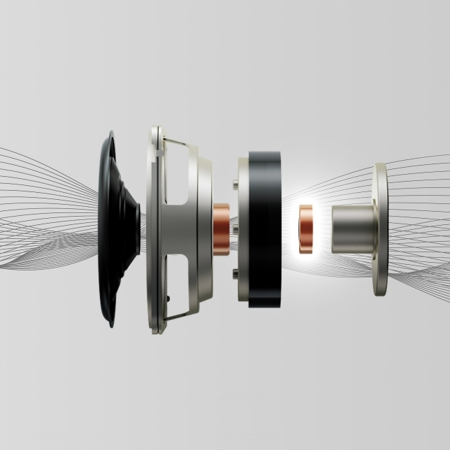 Мідний ковпачок усуває коливання індуктивності котушки в діапазоні високих частот, покращує потік магнітної індукції та забезпечує плавне звучання без спотворень.