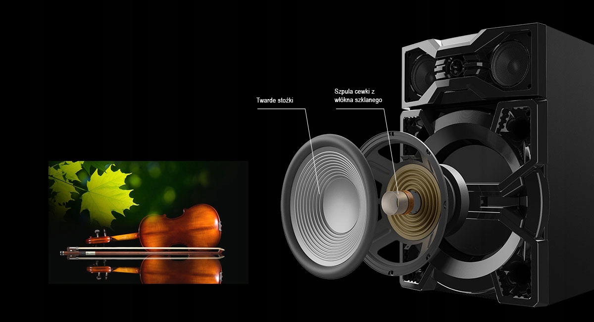 Матеріали динаміків використовують різноманітні технології. Папір конусів поєднувався з деревиною сикамору, яка використовується у музичних інструментах високого класу, забезпечуючи більшу жорсткість і запобігаючи небажаним коливанням. Склопластикова котушка котушки не виявляє жодних проблем із індукованим покриттям, що сприяє більш ефективному відтворенню звуку, особливо в середовищі та високій частотній діапазоні. У матеріалах динаміки використовували різні технології. Папір конусів поєднувався з деревиною сикамору, яка використовується у музичних інструментах високого класу, забезпечуючи більшу жорсткість і запобігаючи небажаним коливанням. Склопластикова котушка котушки не виявляє жодних проблем із індукованим покриттям, що сприяє більш ефективному відтворенню звуку, особливо в середовищі та високій частотній діапазоні.