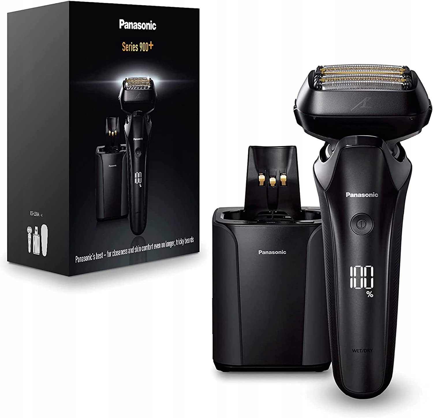 900+ преміум-класу ES-LS9A представляє нову еру: шість японських лез забезпечують надзвичайно комфортну та точну гоління. Завдяки м'якому розсувному валиці та гнучкій ріжучій головці в 22 напрямках, гоління піде на мить ока. Завдяки поєднанню 84 000 руху різання / хв. Завдяки чистому силі лінійного двигуна та доведених лезах нанополії 30 °, ранкове гоління стає справжнім задоволенням. Інноваційний датчик вимірює щільність бороди 200 разів / сек. і відповідно адаптує потужність двигуна. Це забезпечує ще більш ніжне гоління та менше подразнення шкіри. Для очищення ES-LS9A можна легко розмістити в автоматичній станції зарядки та очищення. Завдяки матовому чорному чорному чорному, бритва також є хітом у кожній ванній кімнаті.