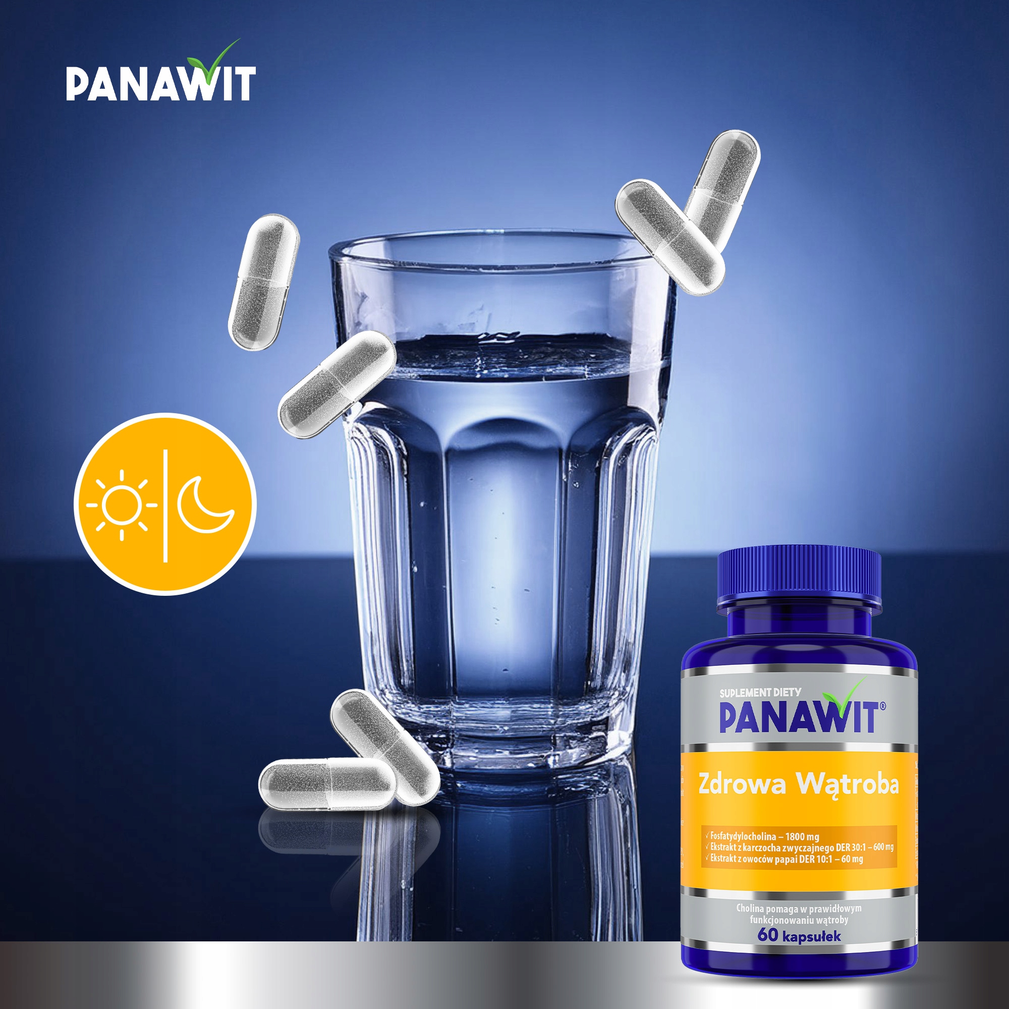 Дієтична добавка Панавіт Здорова печінка доповнює щоденну дієту дорослих у фосфатидилхоліні, вітамінах: В6 та Е та екстракт артишоку та папайї - інгредієнти, що позитивно впливають на травлення та стан печінки. Капсули, укладені в комфортну синю банку, варто мати під рукою, коли ви дбаєте про підтримку шлунково -кишкового тракту.
