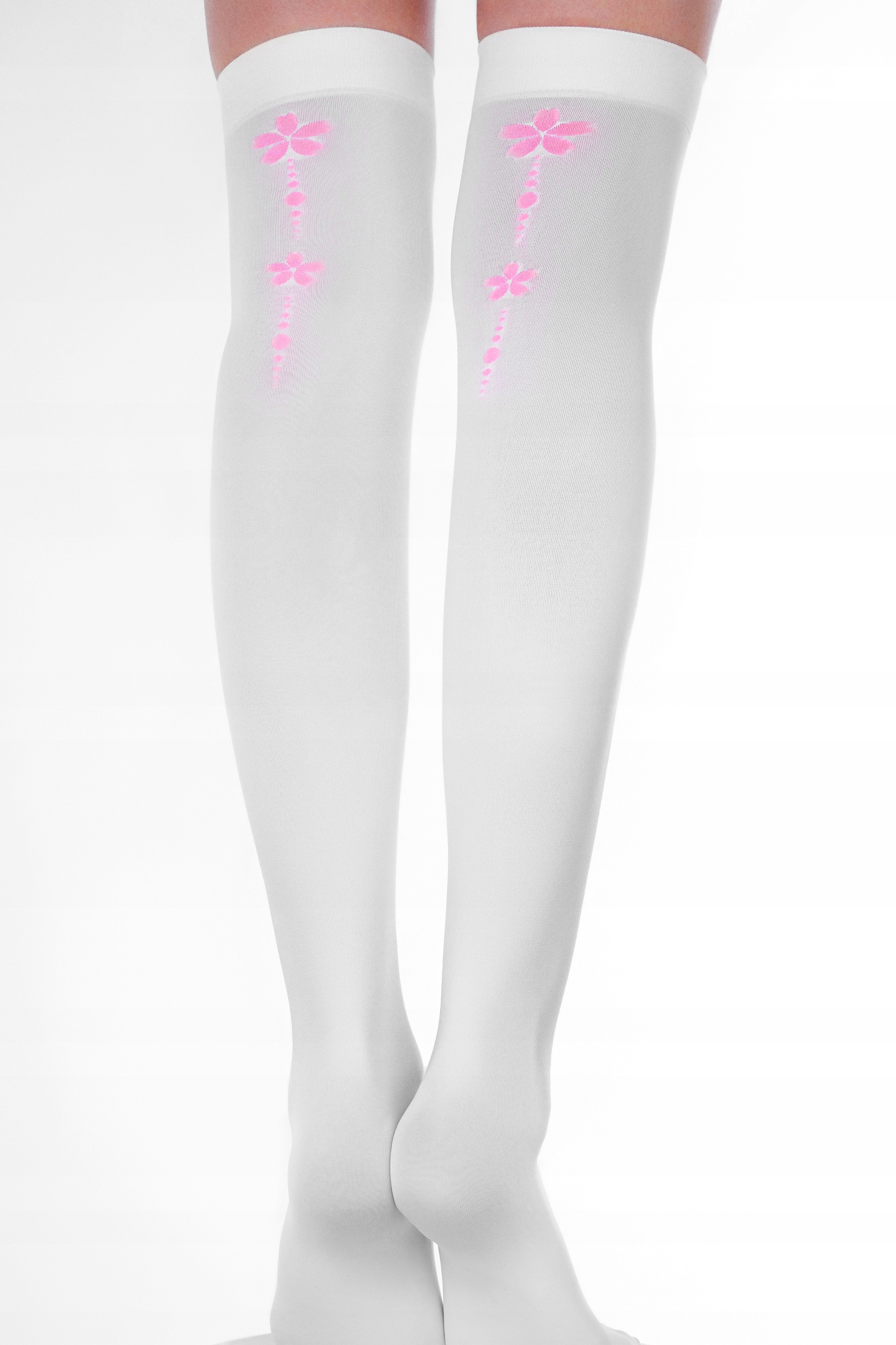Панчохи білі з принтом, непрозорі, самотримаючі