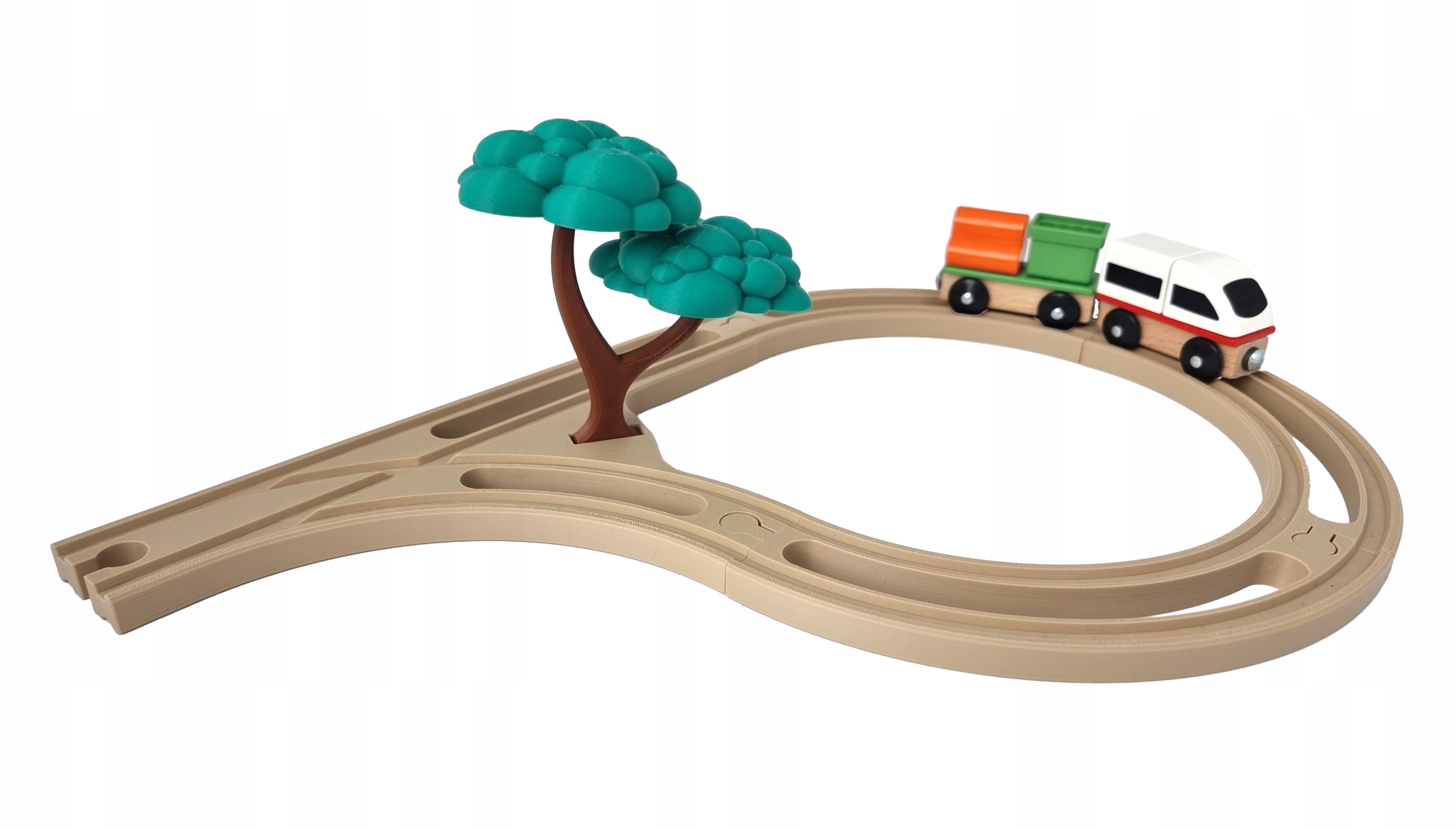 Кожен елемент надруковано за допомогою 3D-технології з високоякісної біологічно розкладаної нитки PLA. Колір імітує деревину, яку використовують виробники дерев'яних доріжок, завдяки чому набір ідеально поєднується з класичними доріжками. 3D-друк забезпечує виняткову точність і в той же час надає іграшці унікальний характер ручної роботи. Кожен елемент виготовляється в Польщі - від дизайну до виробництва.