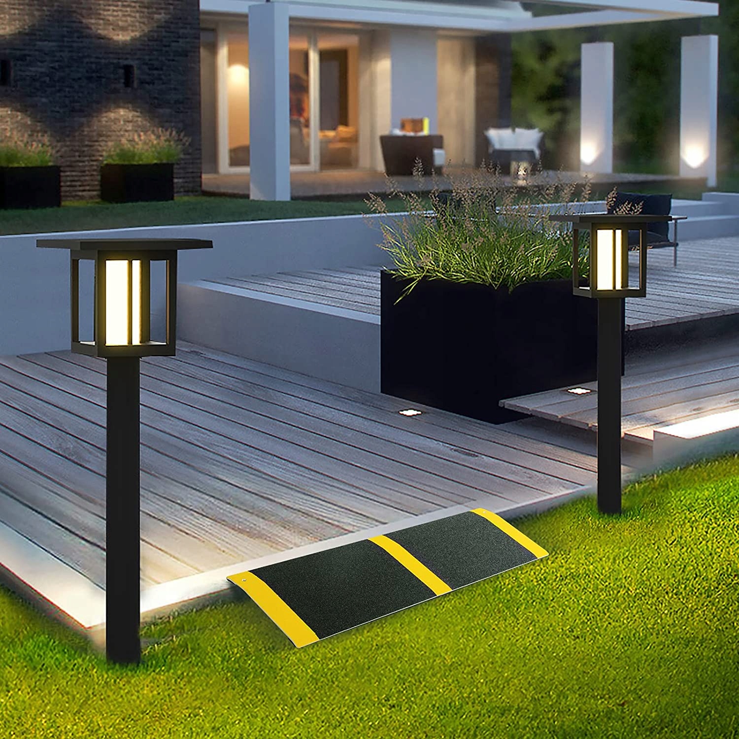 поверхня, що не належить до ковзання: поверхня порогового пандусу оснащена фольгою, що не має слизу, яка має високу адгезію та не -слиз. Жовті наклейки з попередженням з обох боків дозволяють легко перевірити, де знаходиться пандус у темряві.