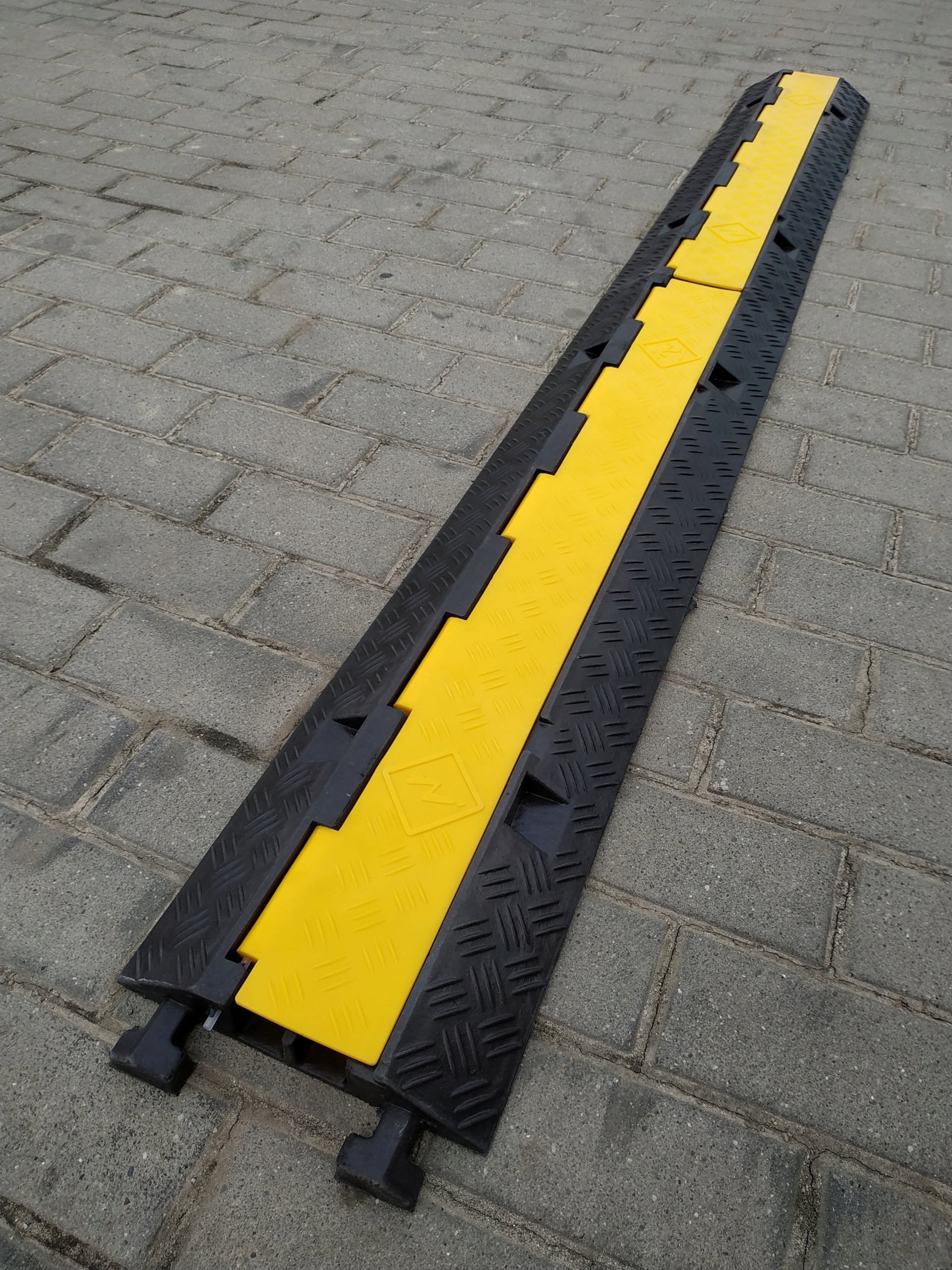 Двоканальний кабельний пандус відповідає всім вимогам професійного захисту кабелів і проводів від наїзду автотранспорту або пішоходів. Завдяки вантажопідйомності 6 тонн на вісь пандус захищає кабелі навіть від великих автомобілів.