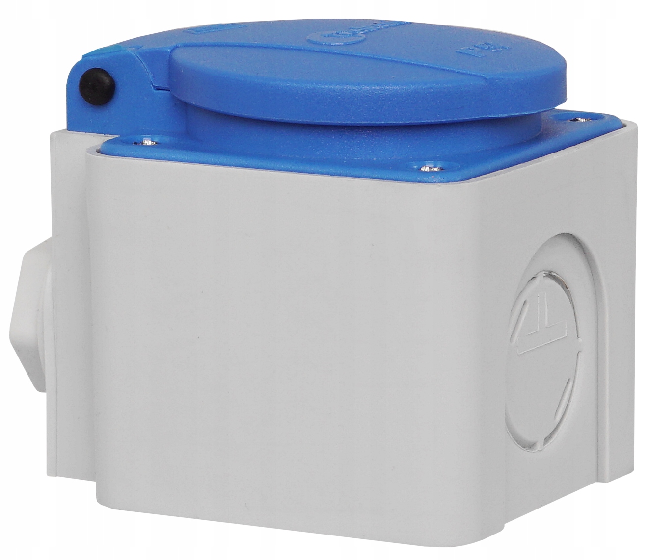 Розміщується в бризгозахищений корпус з можливістю поверхневого монтажу. Розетка має клапан, завдяки якому досягається підвищена герметичність, на рівні IP54. Крім того, він має заземлення польського типу,через шпильку.