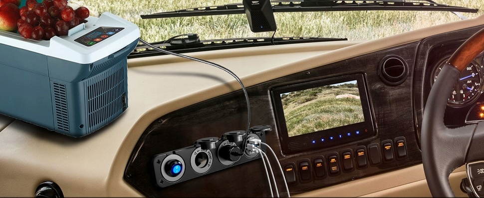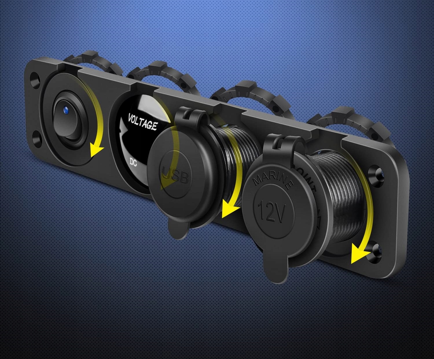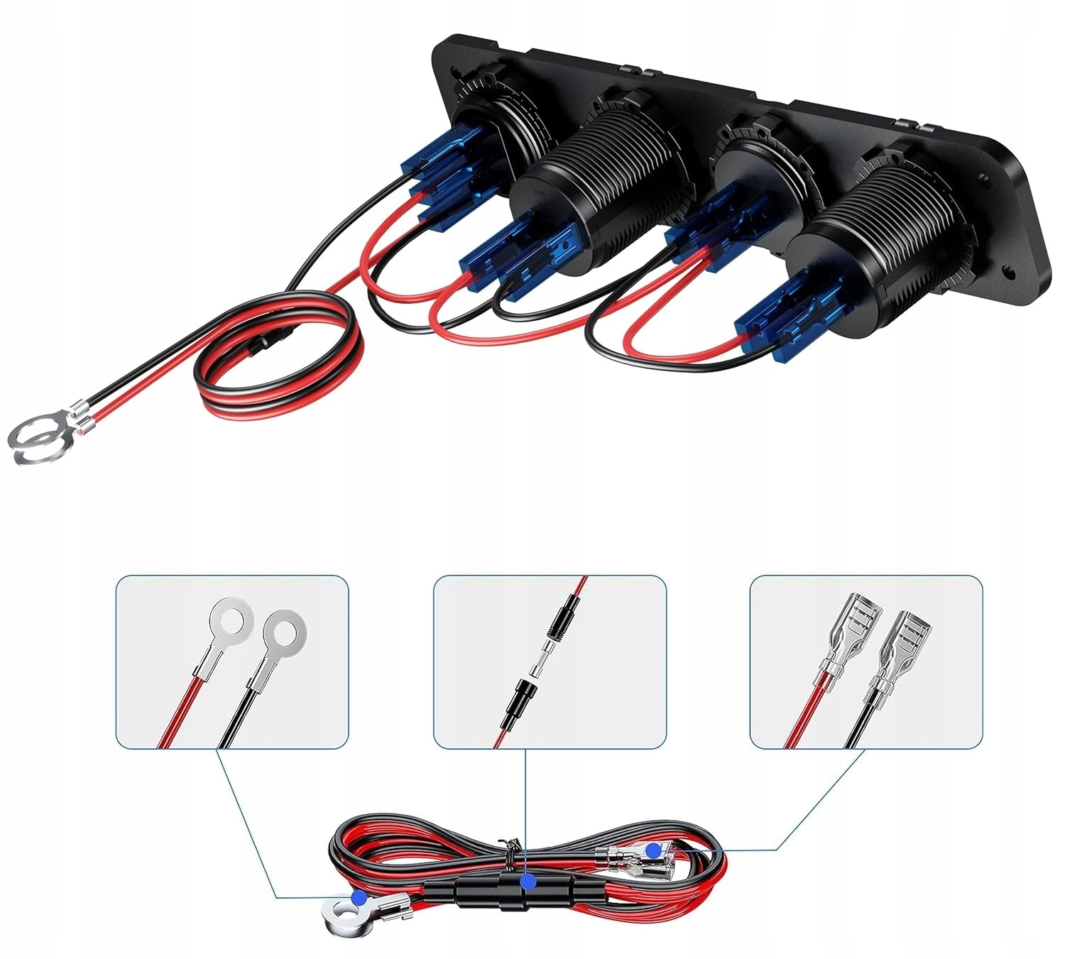 Панель складається з більш легкої розетки , перемикача , цифрового вольтметра , що відображає поточний рівень напруги акумулятора та два порти USB швидке зарядку з напругою 5v 4.2a (2.1a + 2,1a) . Використання обох розетків , тобто заряджання, наприклад Навігація та телефон одночасно.