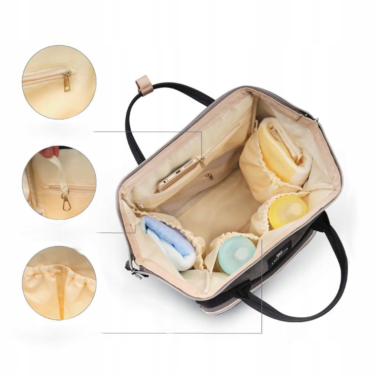 практична, простора сумка з багатьма кишенями (включаючи теплові) та відсіків; Розроблений для батьків маленьких дітей. Ідеально підходить для прогулянок та подорожей.