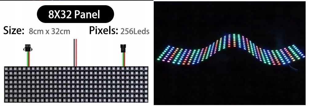 МАТРИЦЯ - ПАНЕЛЬ WS2812B 8 x 32 см. індивідуально адресовані пікселі, загальна кількість 256 пікселів, цифрова гнучка світлодіодна панель, яскраві кольори, освітлення DC5 V