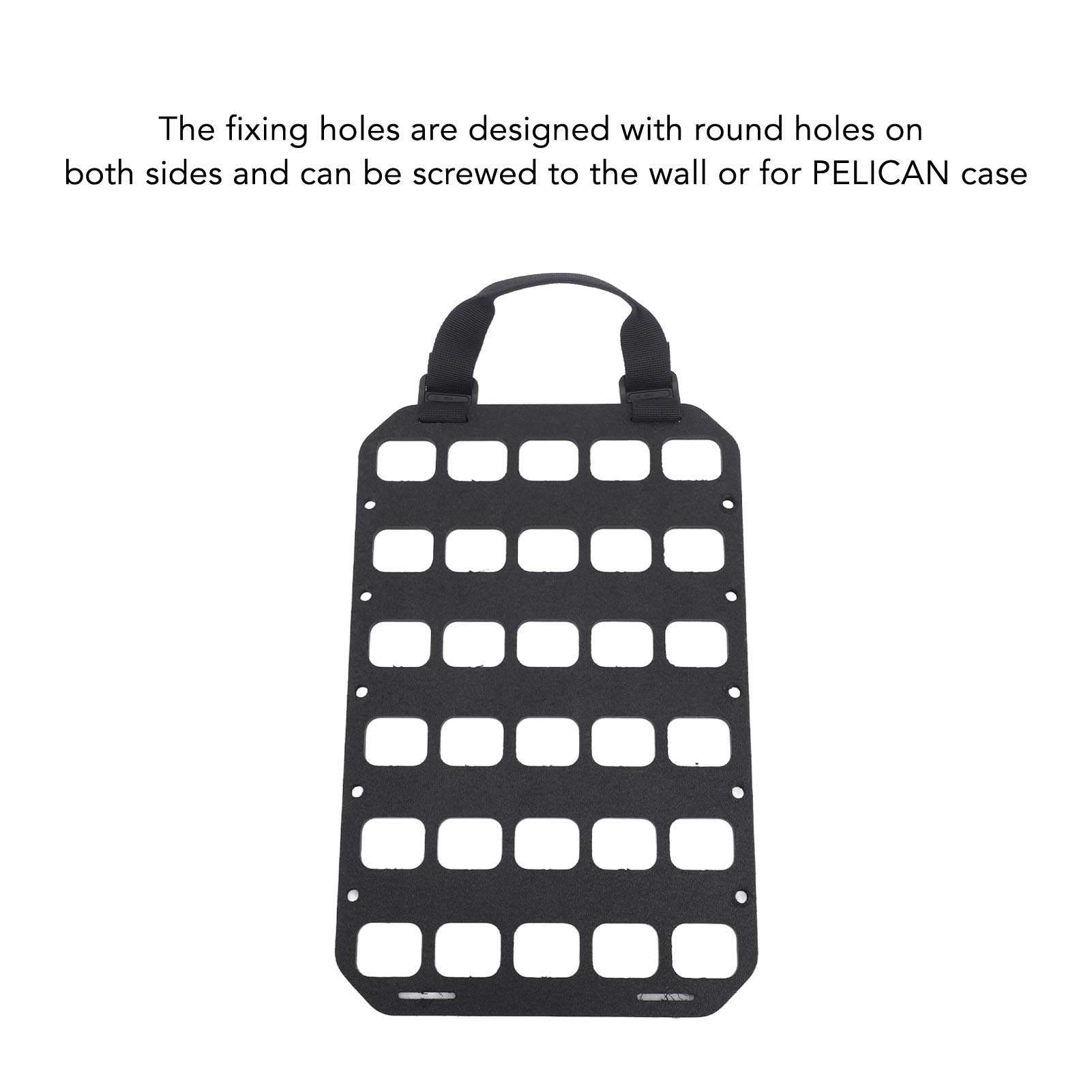 3. МОНТАЖНІ ОТВОРИ: Завдяки круглим отворам з обох боків панелі Molle можна прикручувати до стіни або предметів, наприклад, ящиків PELICAN. Надійні кріпильні отвори роблять панель більш стійкою і її нелегко послабити, забезпечуючи безпеку та стійкість обладнання.