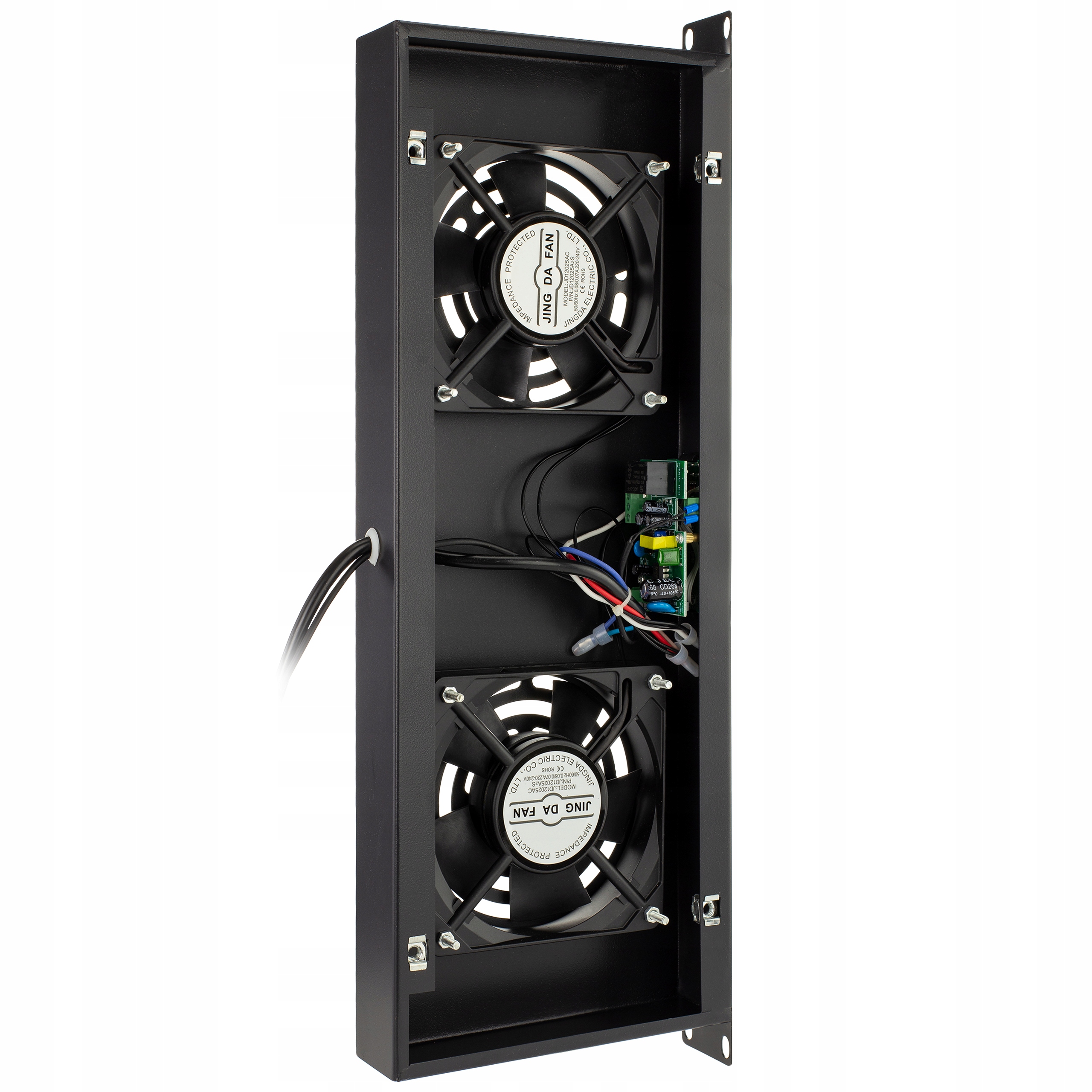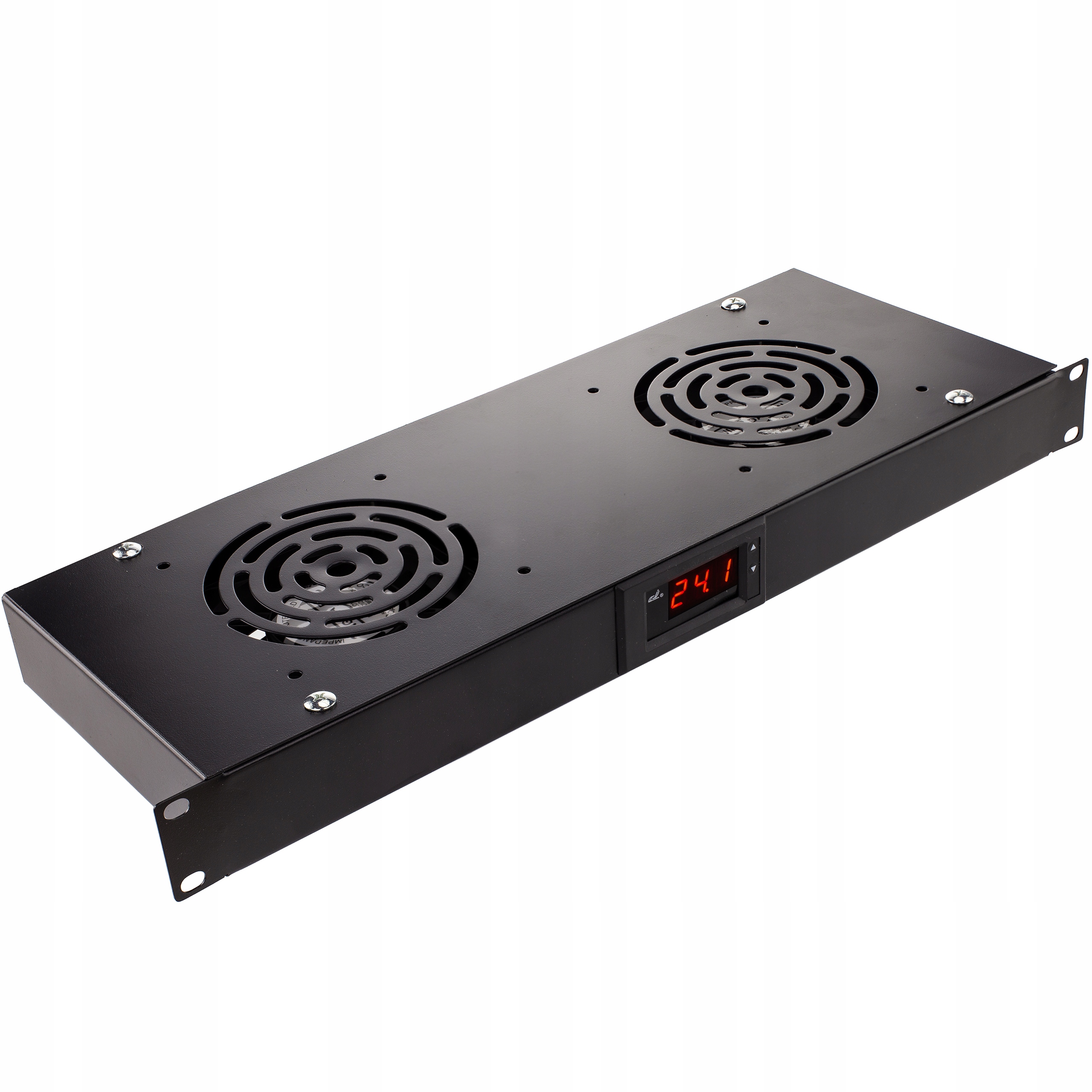 Ефективна вентиляційна панель для навісних і стоячих шаф стандарту 19" RACK. Двовентиляторна із вбудованим термостатомдля плавного регулювання та цифровим індикатором для вимірювання поточної температури.
