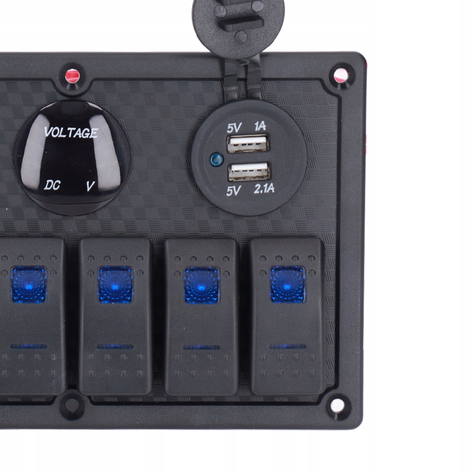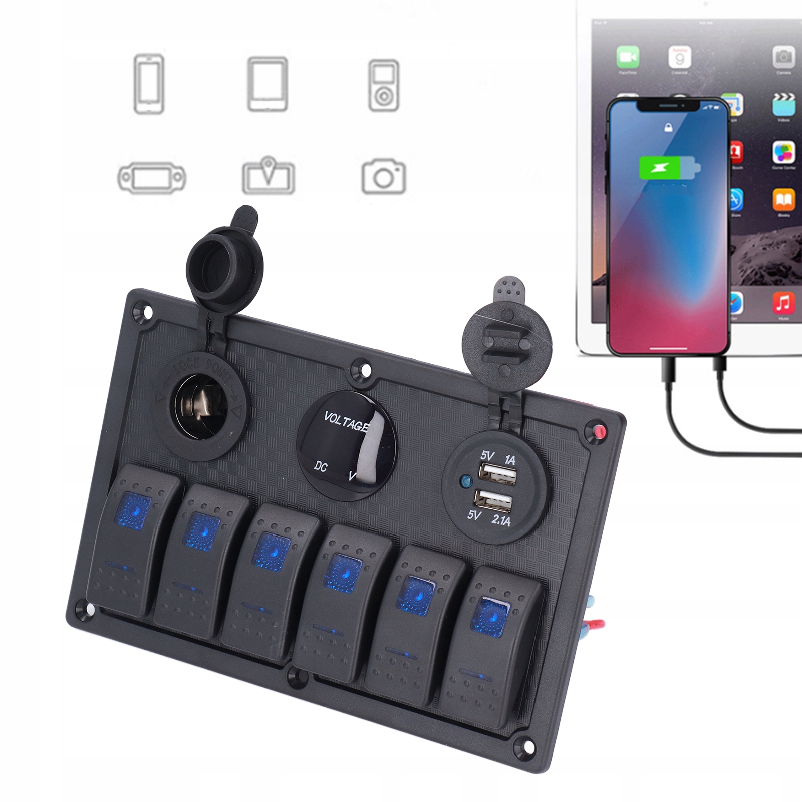 Функція: 1. Широке використання: 6-кратна панель перемикачів колиски підходить для всіх транспортних засобів 12-24 В, катерів, кораблів, моторних човнів, кабіни, пасажирських автомобілів, позашляховиків, косарок, тракторів тощо.