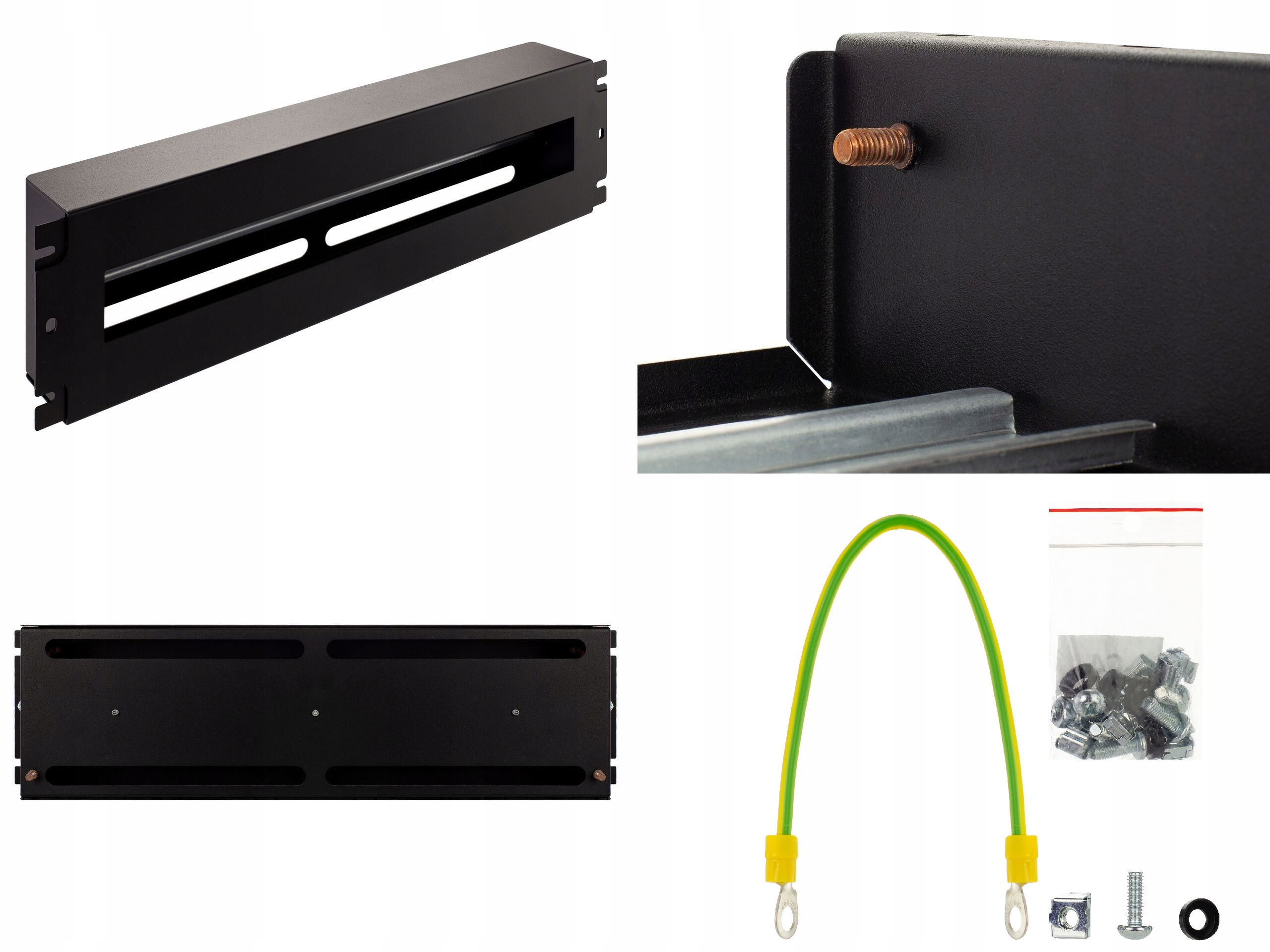 Щит розподільчої напруги, стандартно оснащена шиною TS-35 і кришкою з отвором, призначена для монтажу в 19" RACK шафи модульне обладнання. p>