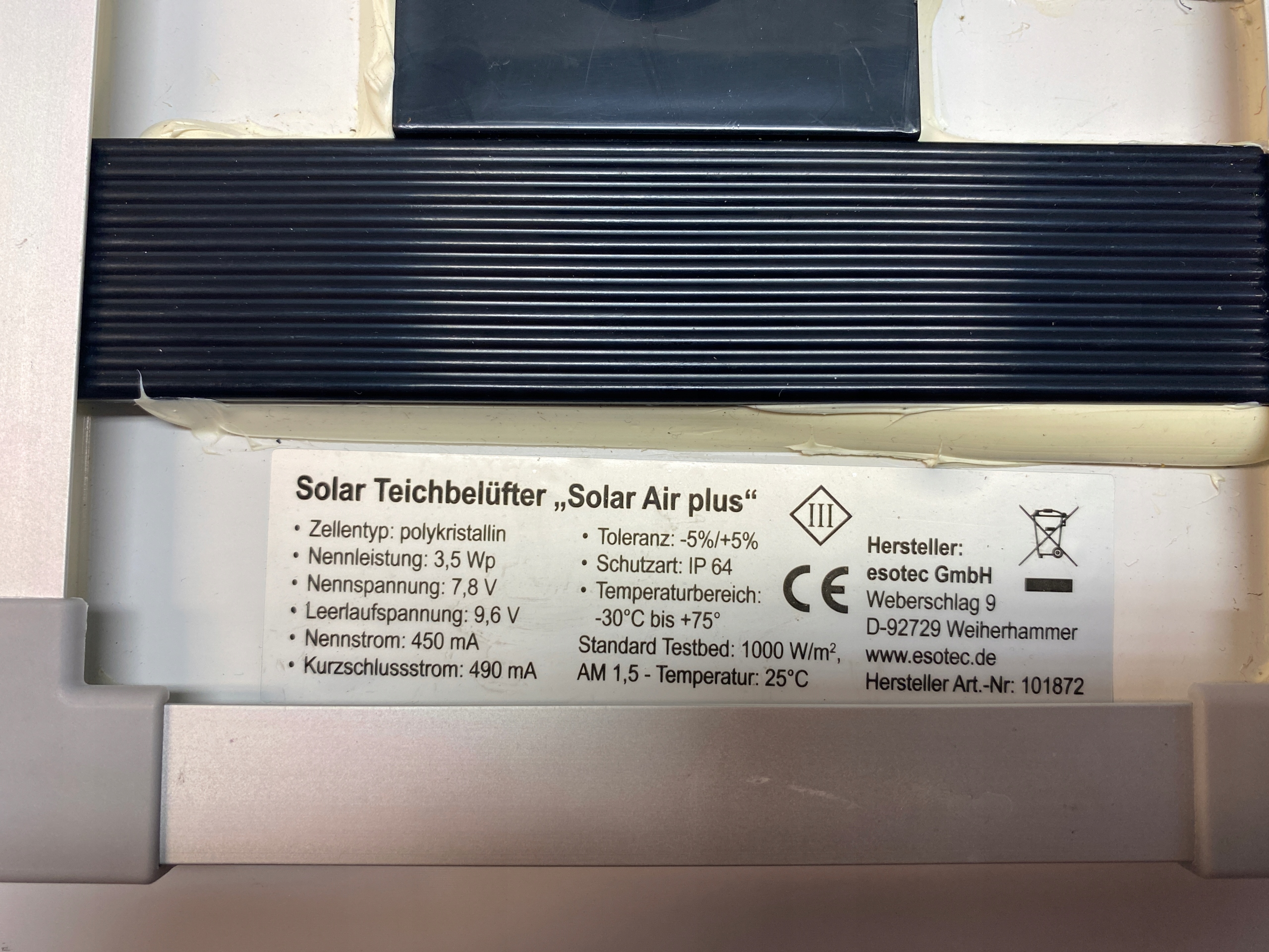 Сонячна панель Esotec 3.5Wp 26x17см