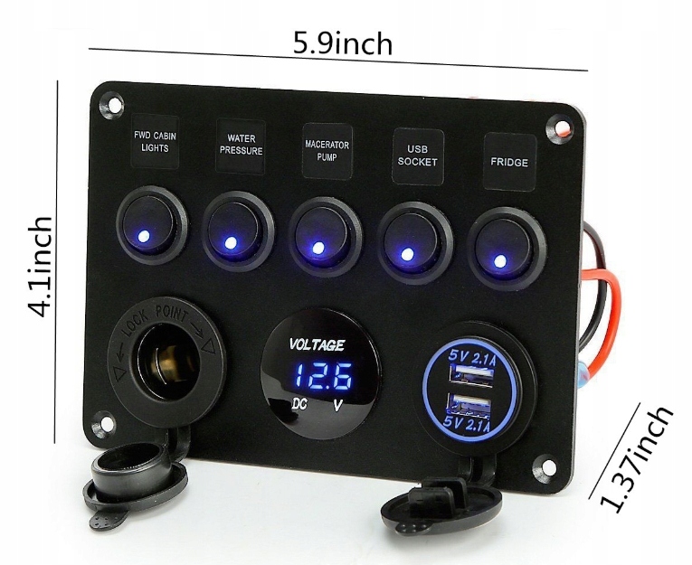 Панель керування сумісна з більшістю транспортних засобів 12-24 В, що робить її універсальним рішенням для автомобілів, вантажівок, кемперів, човнів, яхт, літаків тощо. Ви можете використовувати його для керування світлом, аудіопристроями, насосами, вентиляторами та іншими електричними пристроями.