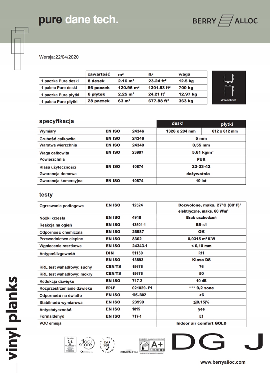 Панелі Pure мають шар зносу 0,55 мм, що робить їх ідеальними як для дому, так і для домашнього використання комерційний.