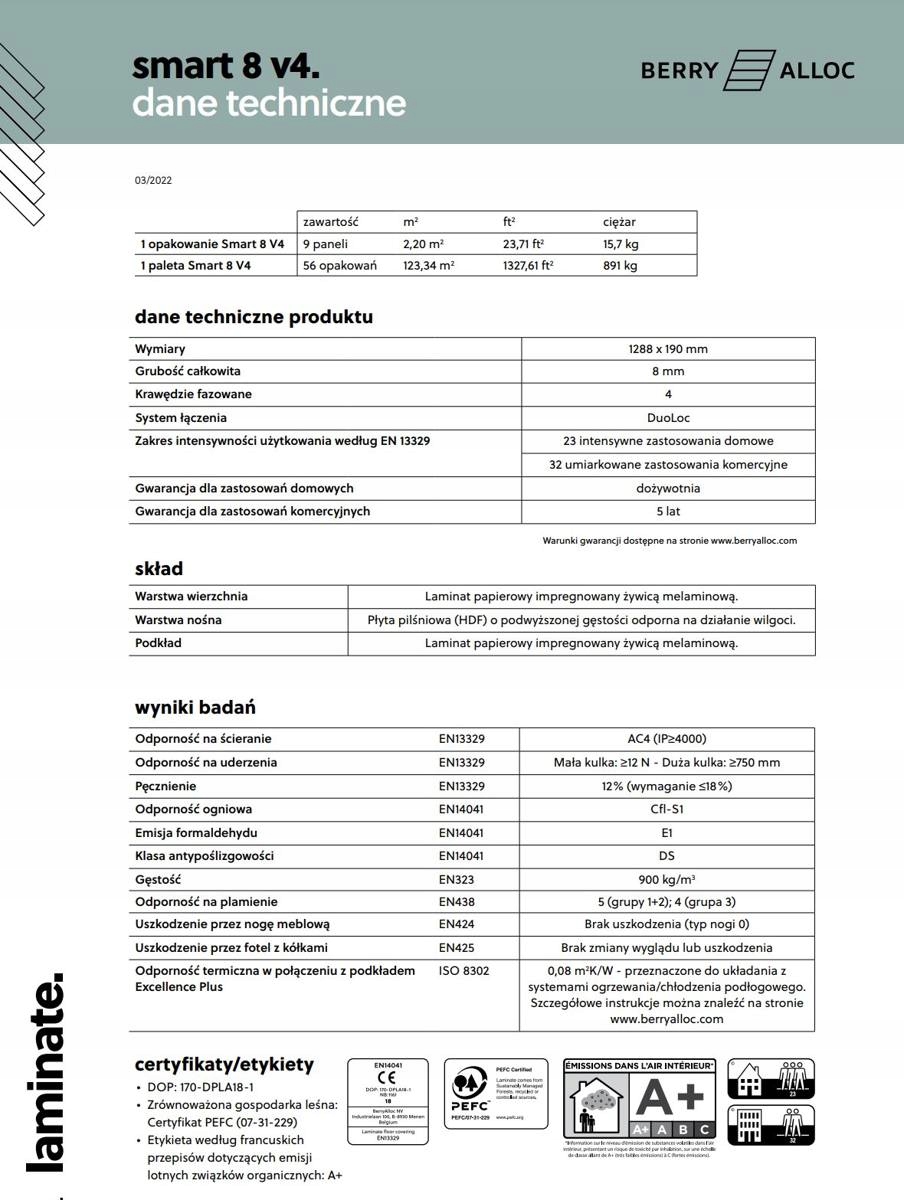 - Додаткова інформація: PEFC, преміальна якість, легкий чистити, стійкий до подряпин, для інтенсивного використання, простий у встановленні