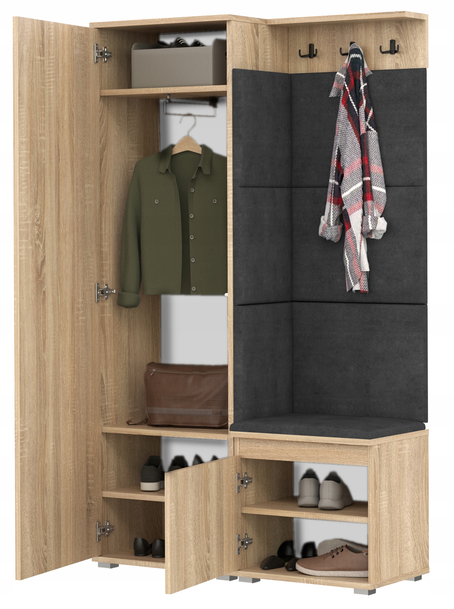 Сучасний функціональний набір для передпокою, доступний у 3 кольорових версіях та трьох кольорах сидить і панелі.