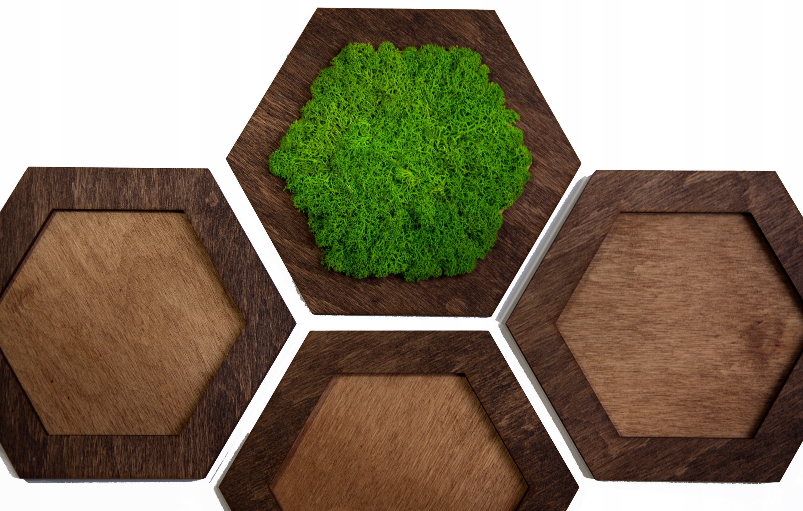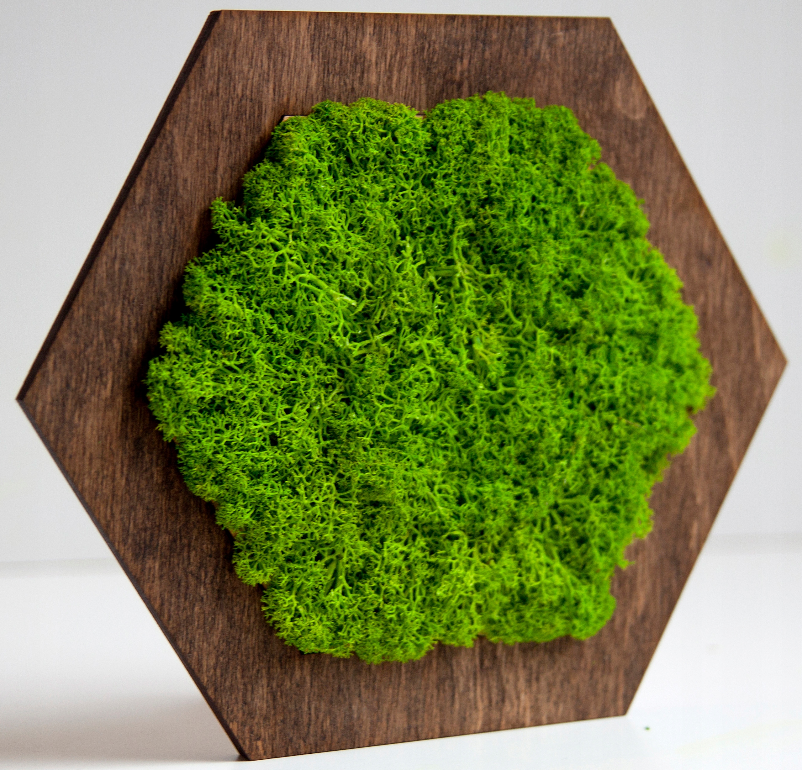 - Матеріал:Вільхова фанера, вощена натуральним воском, скошений мох весняно-зеленого кольору