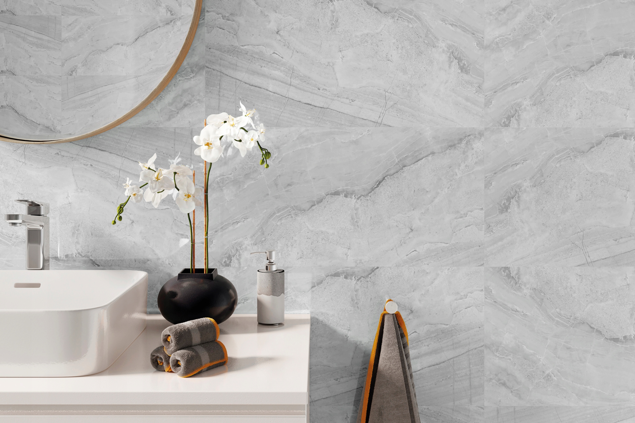 Попелясто-сірий мармур дуже гарно доповнює елегантні квартири, прикрашені золотими деталями та оригінальними тканинами. Чудово підійде для інтер'єрів лофт, де разом з деревом чудово прикрасить простір.