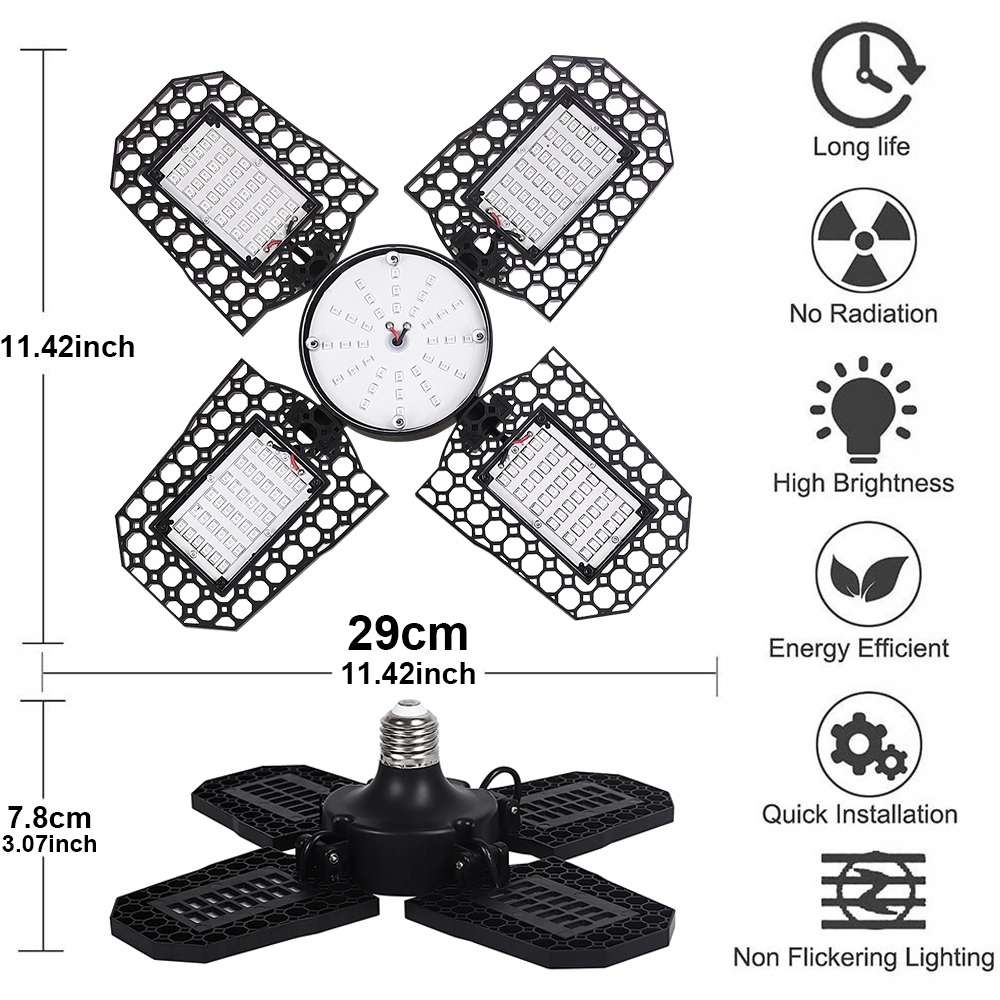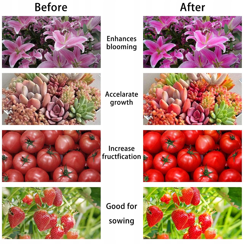 【Складна лампа для росту】 Лампа для росту має 4 крила, які можна регулювати до 90°. З кутом променя 120° 4 крила створюють світло, розширюючи ефективну площу освітлення для більшої кількості рослин. Світлодіодне освітлення може охоплювати 13,5 x 13,5 м/4 x 4 футів у макс. За мінімальних витрат ці світлодіодні світильники для вирощування забезпечують цільову довжину хвилі для великих площ, щоб стимулювати ріст кімнатних рослин.