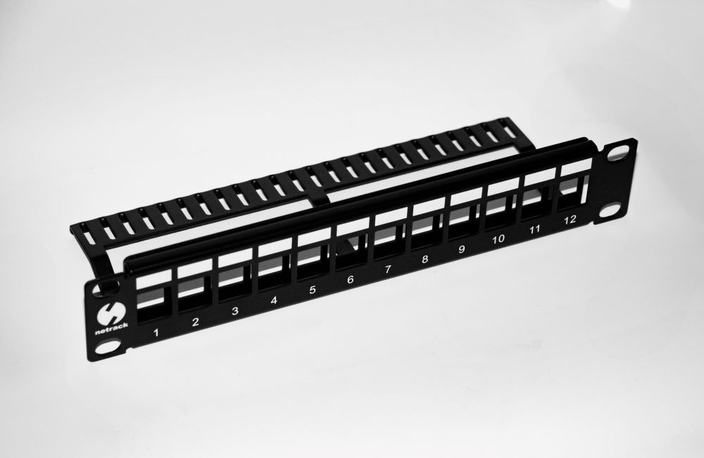 Панельна панель Keystone Rack 10 "1U, 12-Porta, UTP, Netrack, Black