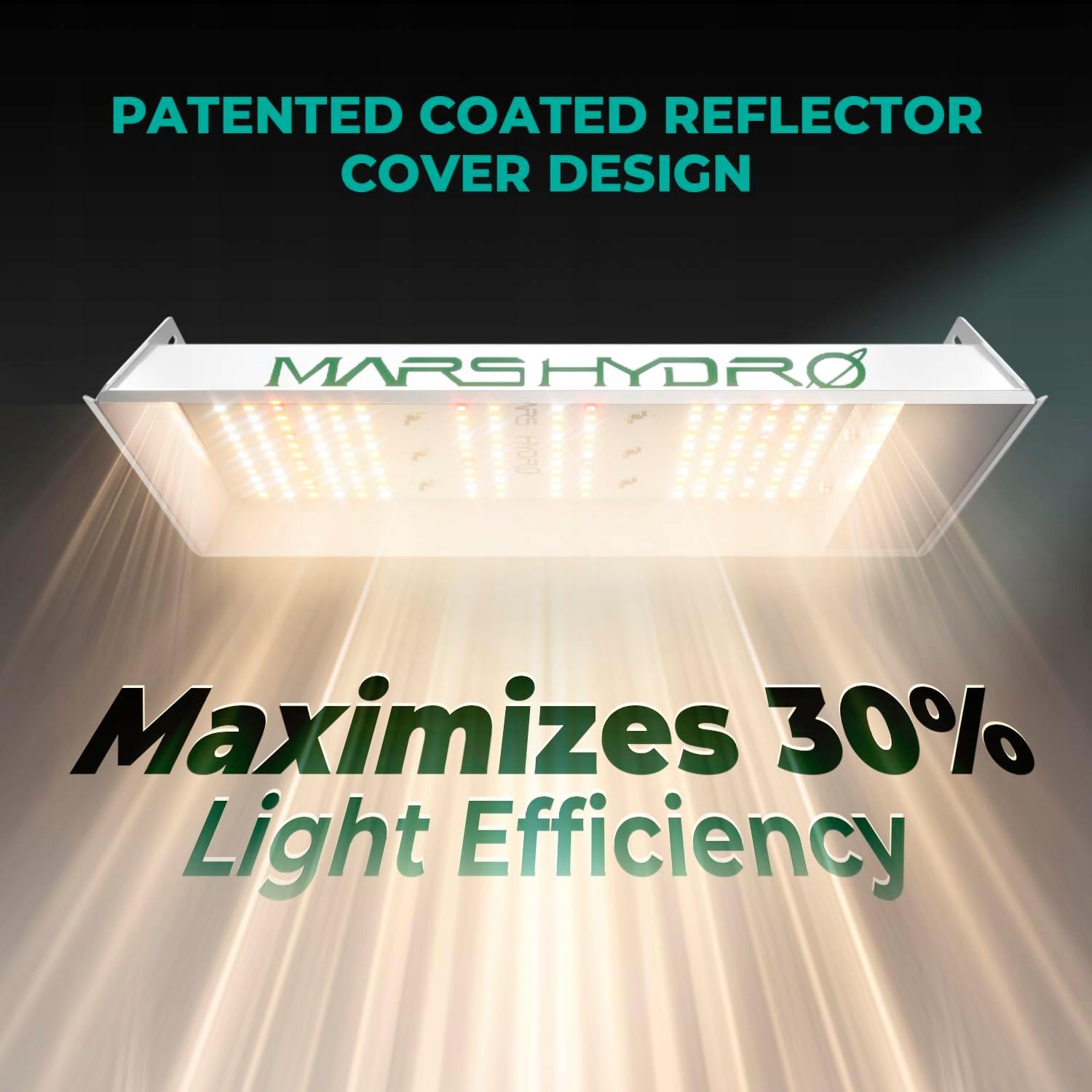 · Ширше охоплення та потужніше світло: білий 120° рефлектор світильника Mars Hydro TS600 запатентований і забезпечує ширше охоплення та підвищену інтенсивність світла, допомагаючи рослинам краще поглинати. світло.