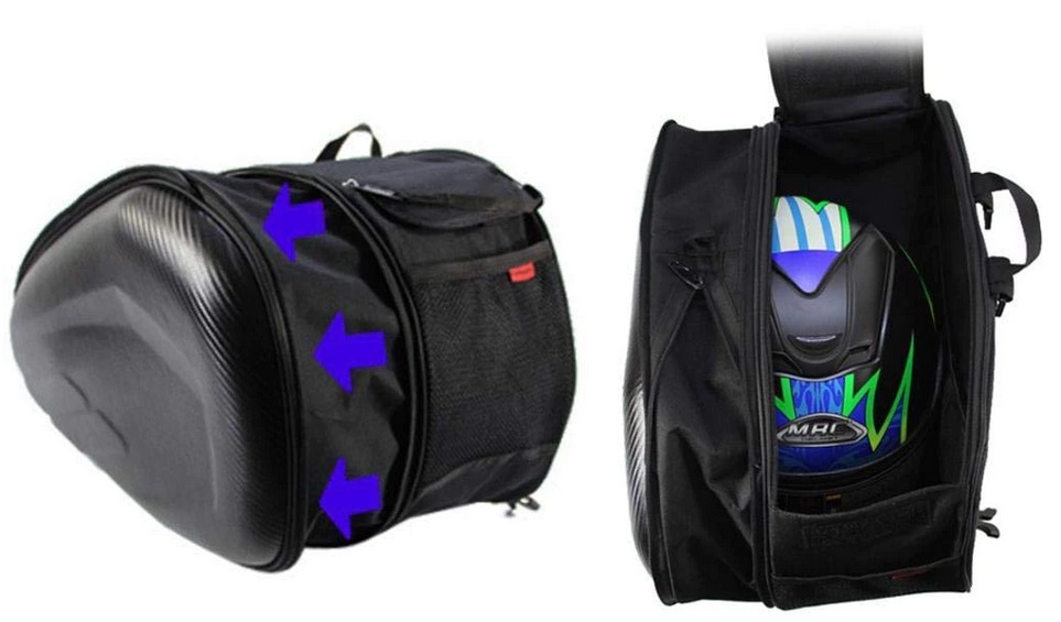 - Ця сумка для мотоциклів може бути розширена для зберігання великої кількості предметів та обладнання, таких як набори для ремонту велосипедів та інструменти, особисті предмети, шоломи тощо. знімний. Підходить для більшості видів мотоциклів.