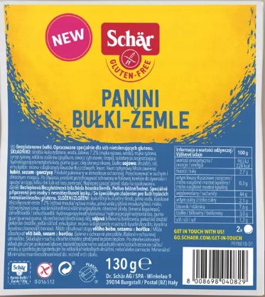 рулони Паніні Шар - ідеальний вибір для кожного, хто хоче насолоджуватися смачним смаку, не боячись передгров’яни. Створений відомим брендом Schar, вони гарантують якість та смак, які оцінять навіть найвибагливіші гурмети. (Гідроксипропілометилулоза), гума гуар, соняшникова олія, соєвий білок, дріжджі, сіль, емульгатор (моно- та дигліцериди жирних кислот), підкислююча речовина (лимонна кислота). Він може включати: Люпін, кунжут та гірчиця. 1.2g. Після відкриття споживайте протягом декількох днів або заморозити.