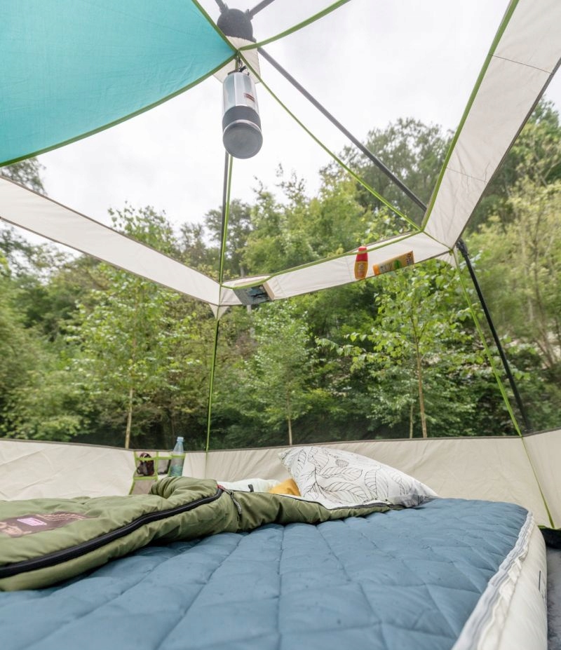 Намет має великий вхід, інноваційно та практично встановлено