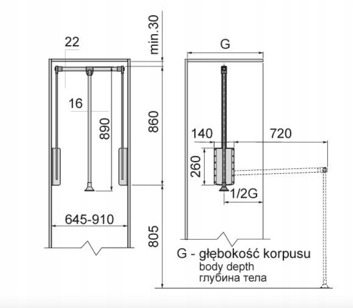 • Ширина меблів: 645-910 мм