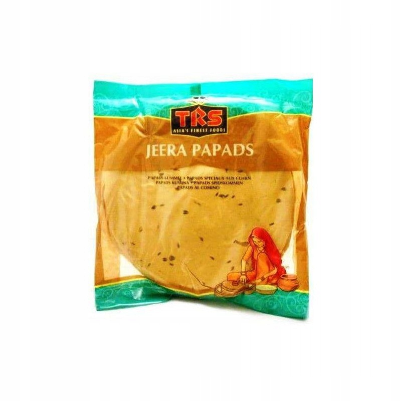 Пападам з кмином TRS» - це хрусткі млинці з нуту, які є популярною добавкою в індійській кухні. Додавання кмину надає їм неповторний смак і аромат. Пападам з кмином ідеально підходять як закуска або доповнення до різних страв. бути розігрітим або запеченим, для хрусткої консистенції міститься X шматочків пападамів.