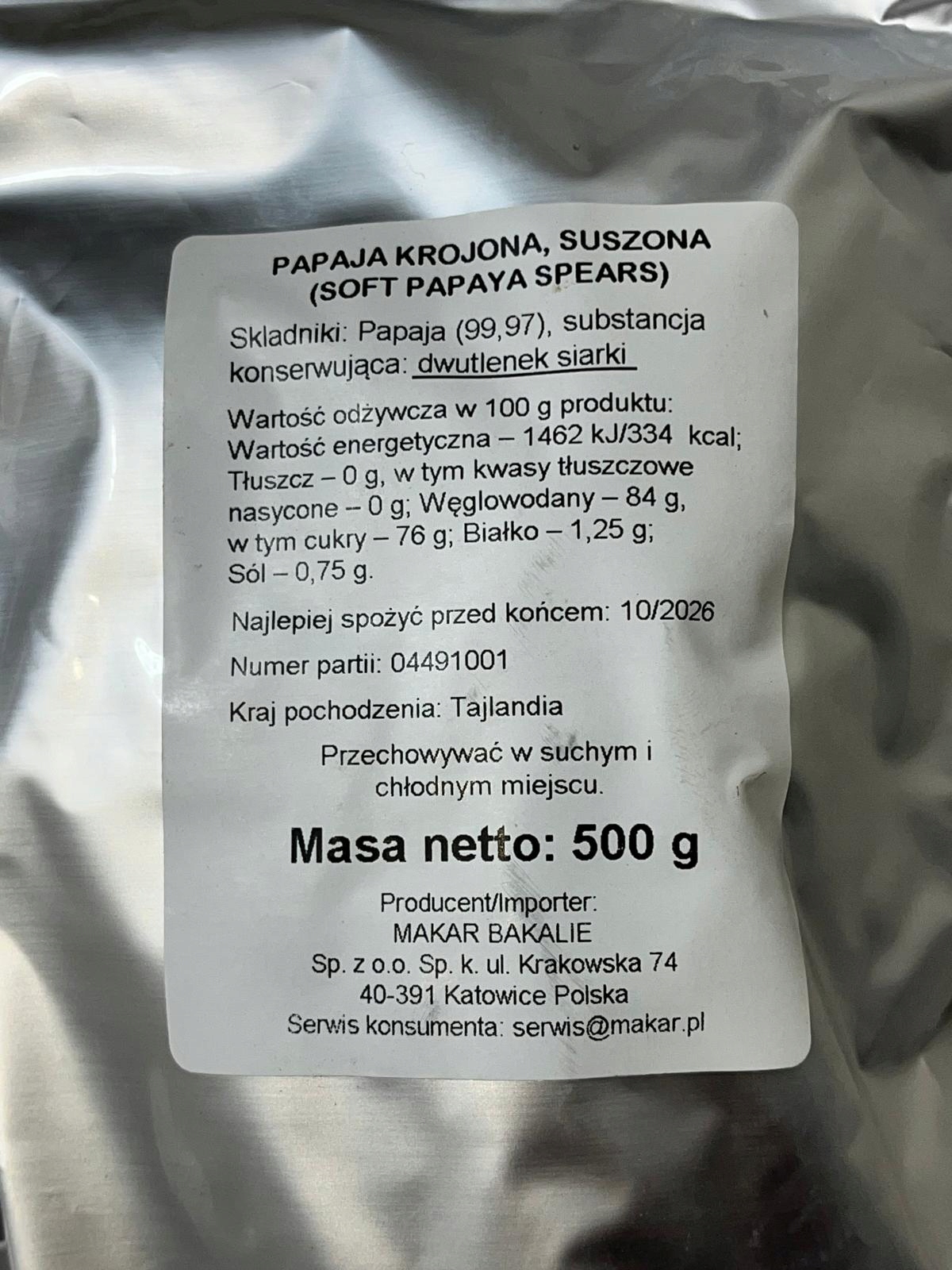 - Інгредієнти: папайя (99,97%), консервант: діоксид сірки.