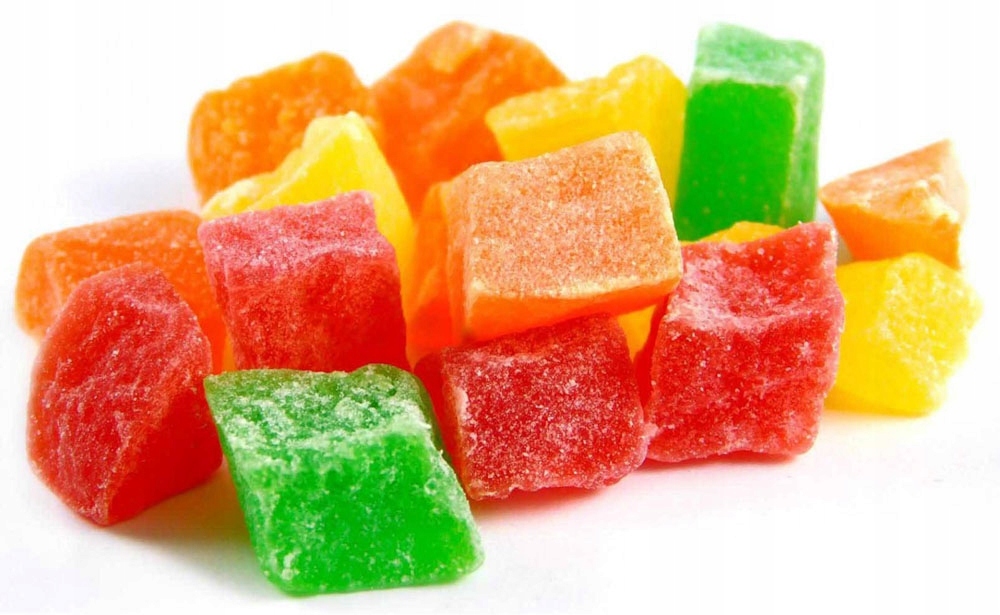 Різнокольорові цукати з папайї є ідеальним доповненням до тортів. Він інтенсивно солодкий, а його аромат поєднує в собі солодкість і цитрус. Продукт закривається в щільні пакети на блискавці, тому ми можемо бути впевнені в його свіжості після багаторазового відкривання та закривання.
