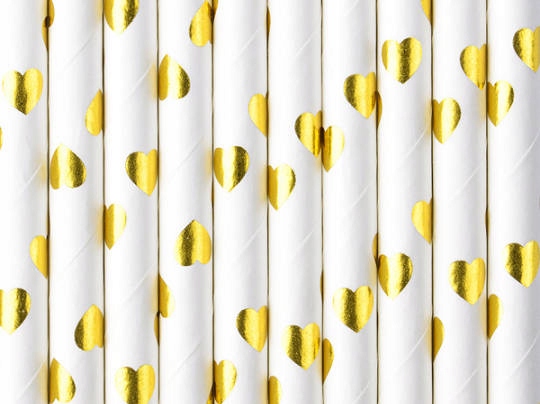 ПАПЕРЕВІ СОЛОМКИ з золотими сердечками 10 шт