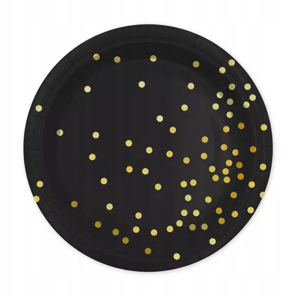 Тарілки паперові чорні з золотими крапками, 6 шт.