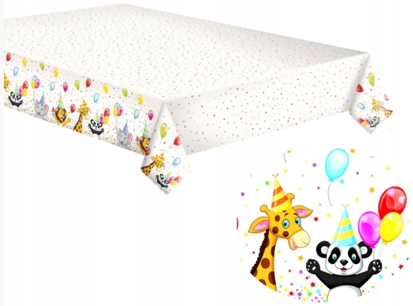 ПАПЕРОВА СКАТЕРТИНА ЖИРАФ ПАНДА ПОВІТРЯНІ КУЛІ ДЕНЬ НАРОДЖЕННЯ 1,8М