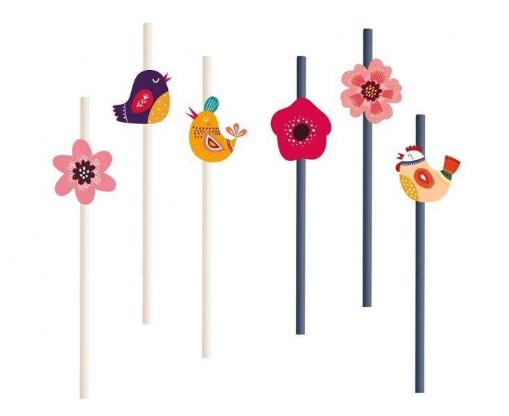 Набір включає 3 соломинки з квітами та 3 із пташками.