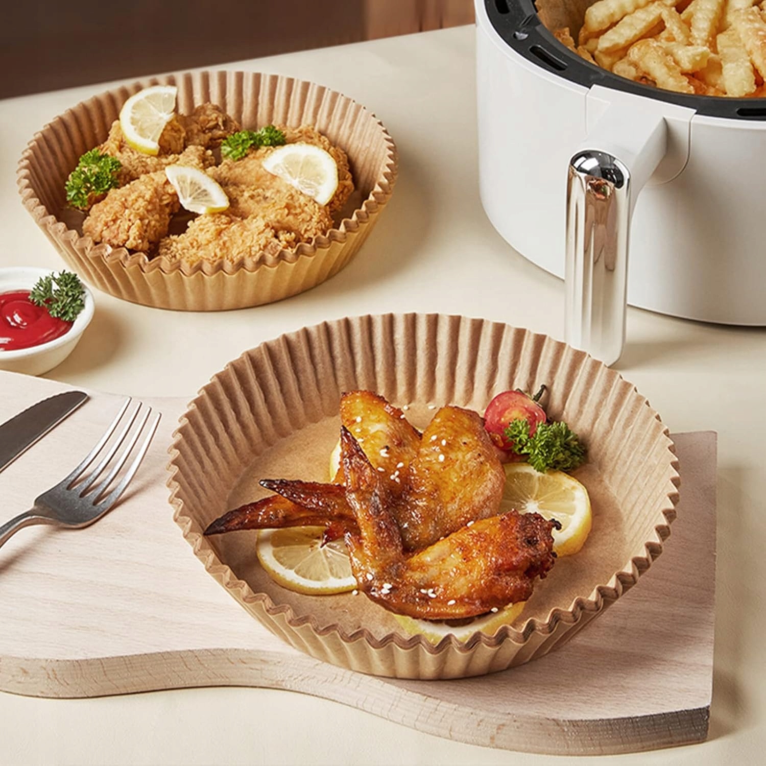 ✅ 100 одноразових паперових картриджів до повітряного фрімпера Fryzdognica] Чи любите ви готувати їжу в фрі в гарячому повітрі, але чи ненавидите прибирання? Якщо так, наша продукція може бути найкращим вибором. Наші продукти пропонують достатню пергаментну папір, яку можна кинути без очищення. Матеріал, звичайно, біологічно розкладається та екологічно чистий. Силіконовий контакт з їжею. Нетоксичний і нефлуоресцентний, ви можете випікати їжу без страху.