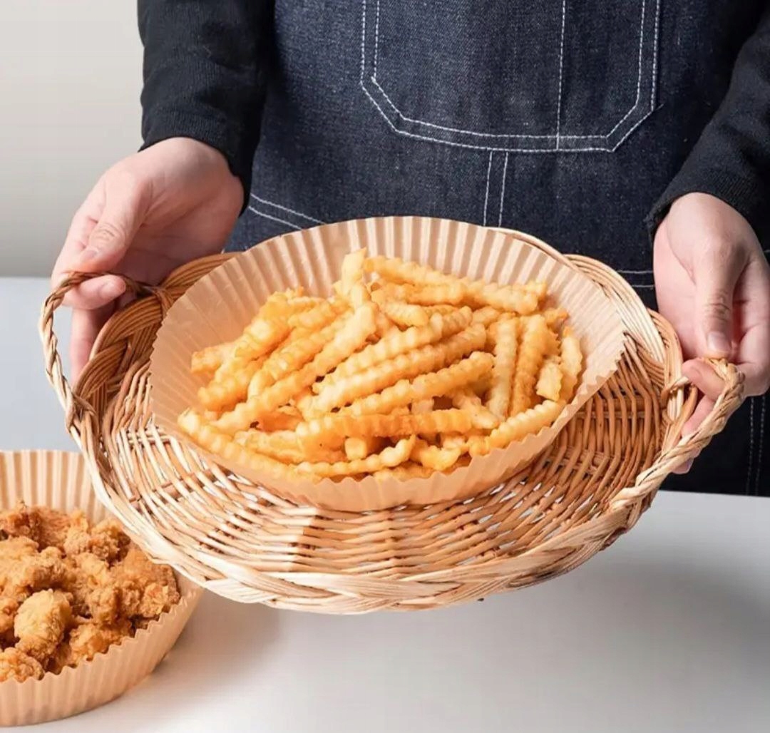 Практичні та зручні паперові вставки для аерофритюрниці, які полегшують щоденне приготування їжі та чищення. Ідеально підходить для приготування картоплі фрі, м’яса, риби, овочів, випічки та багатьох інших страв.