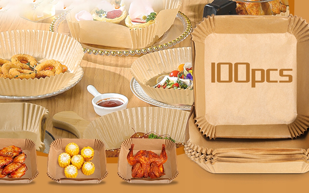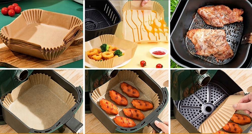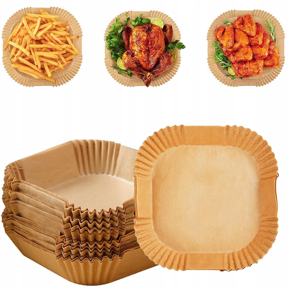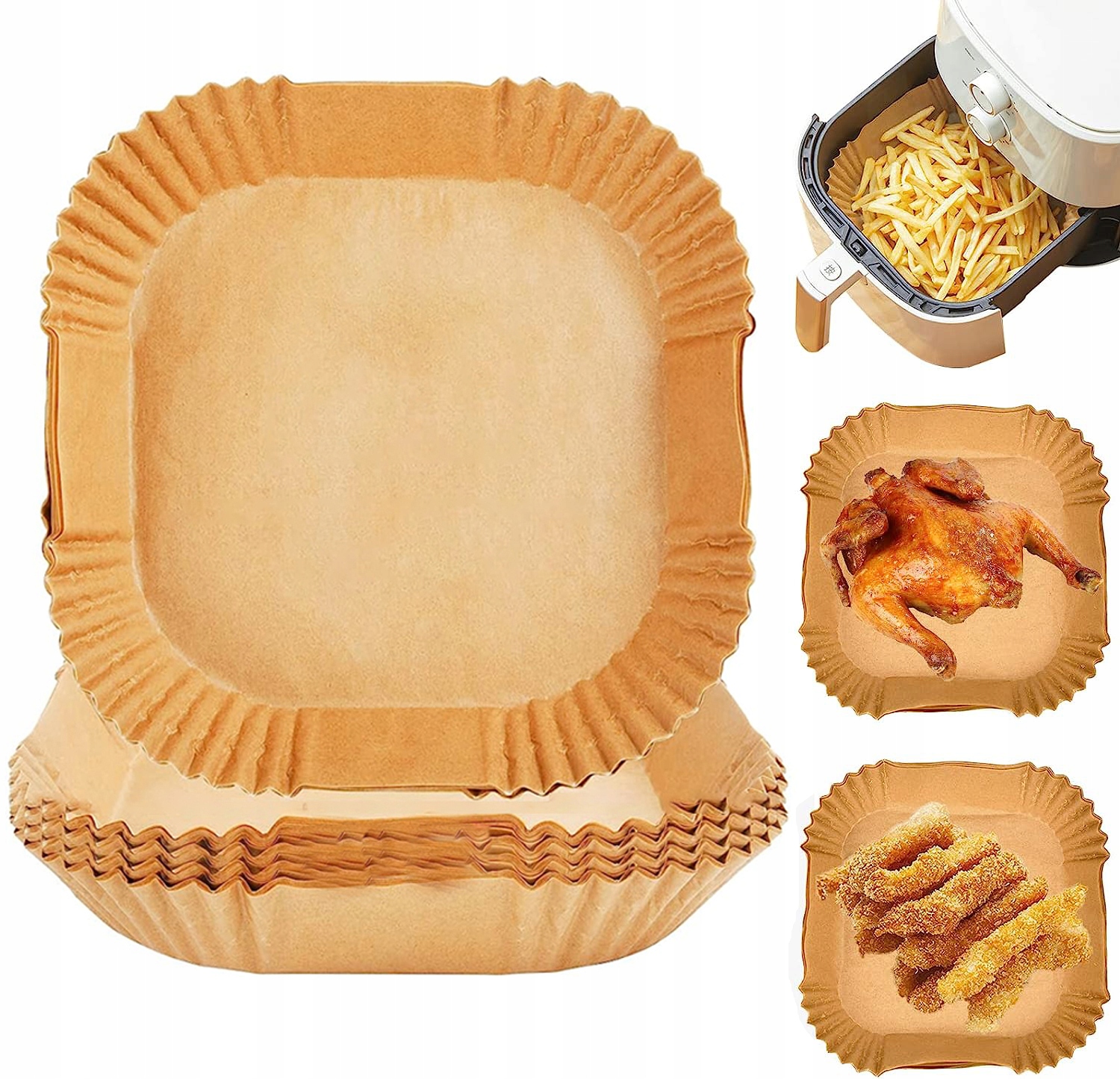 Папір для випікання для фритюрниць із гарячим повітрям є термостійким до 220 градусів за Цельсієм і може використовуватися у звичайних фритюрницях із гарячим повітрям. печі та мікрохвильові пристрої.