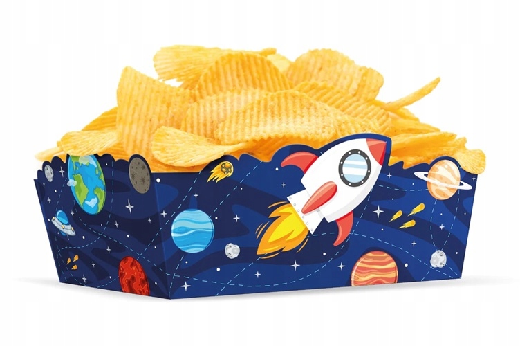 Паперові коробки для чіпсів із космічним мотивом.