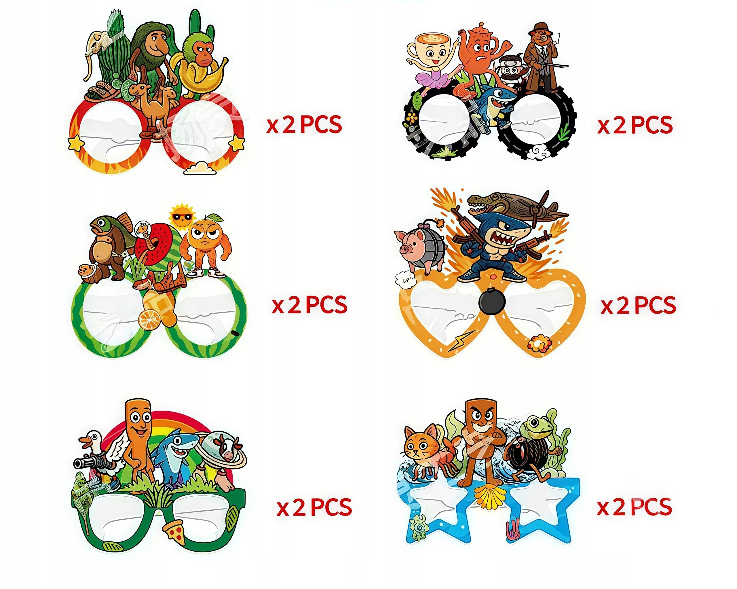 ПАПЕРОВІ ОКУЛЯРИ ДЕНЬ НАРОДЖЕННЯ BRAINROT BREJNROT 12 ШТ TUNG SAHUR КОСТЮМ