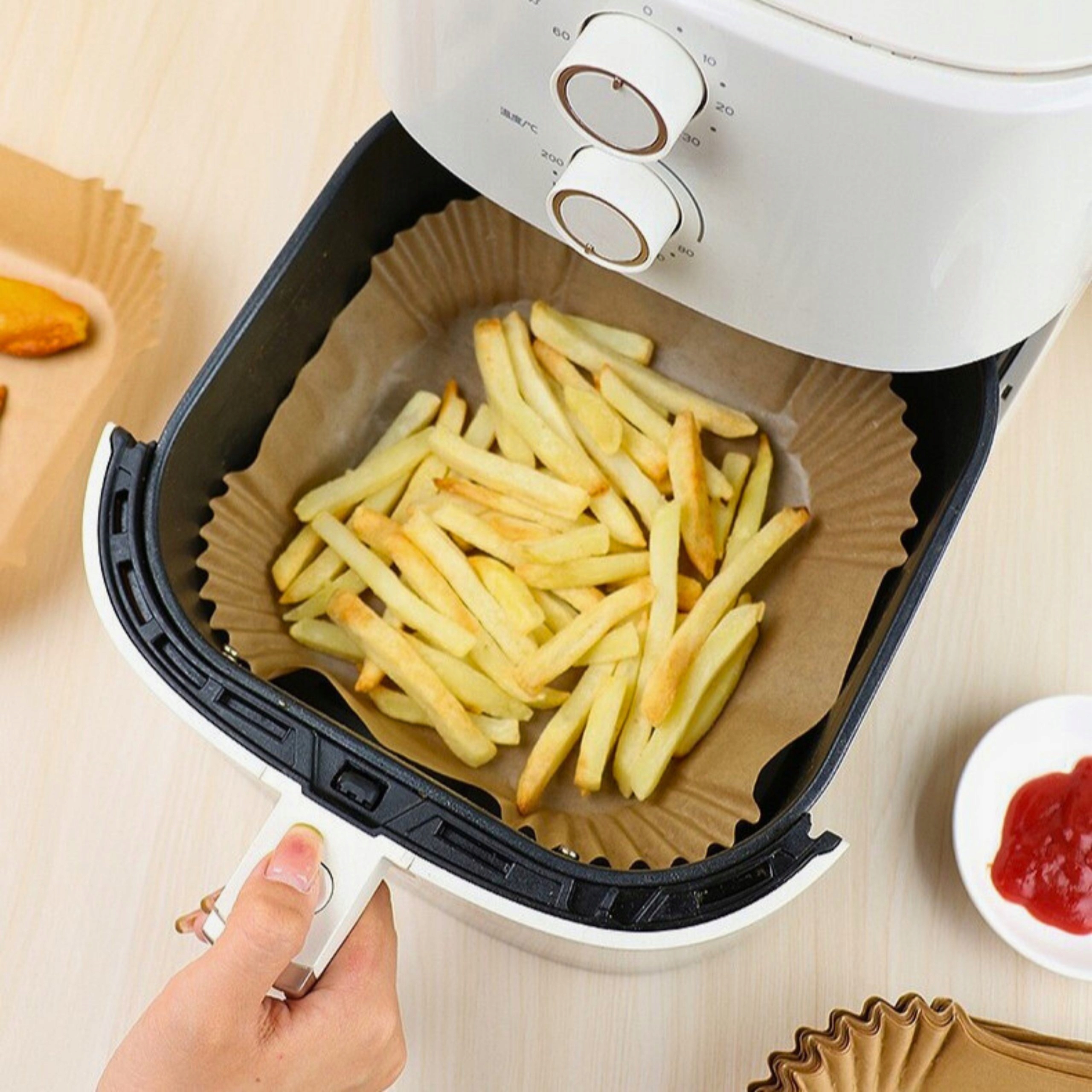 Забудьте про спалену їжу та важке очищення фритюрниці! Завдяки нашому паперовому внеску до фритюрниці, що не живть, ваші страви будуть ідеально хрусткими, а пристрій залишатиметься чистим та без залишків жиру та їжі.